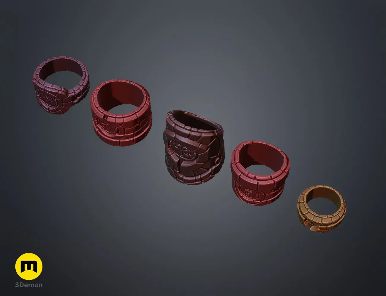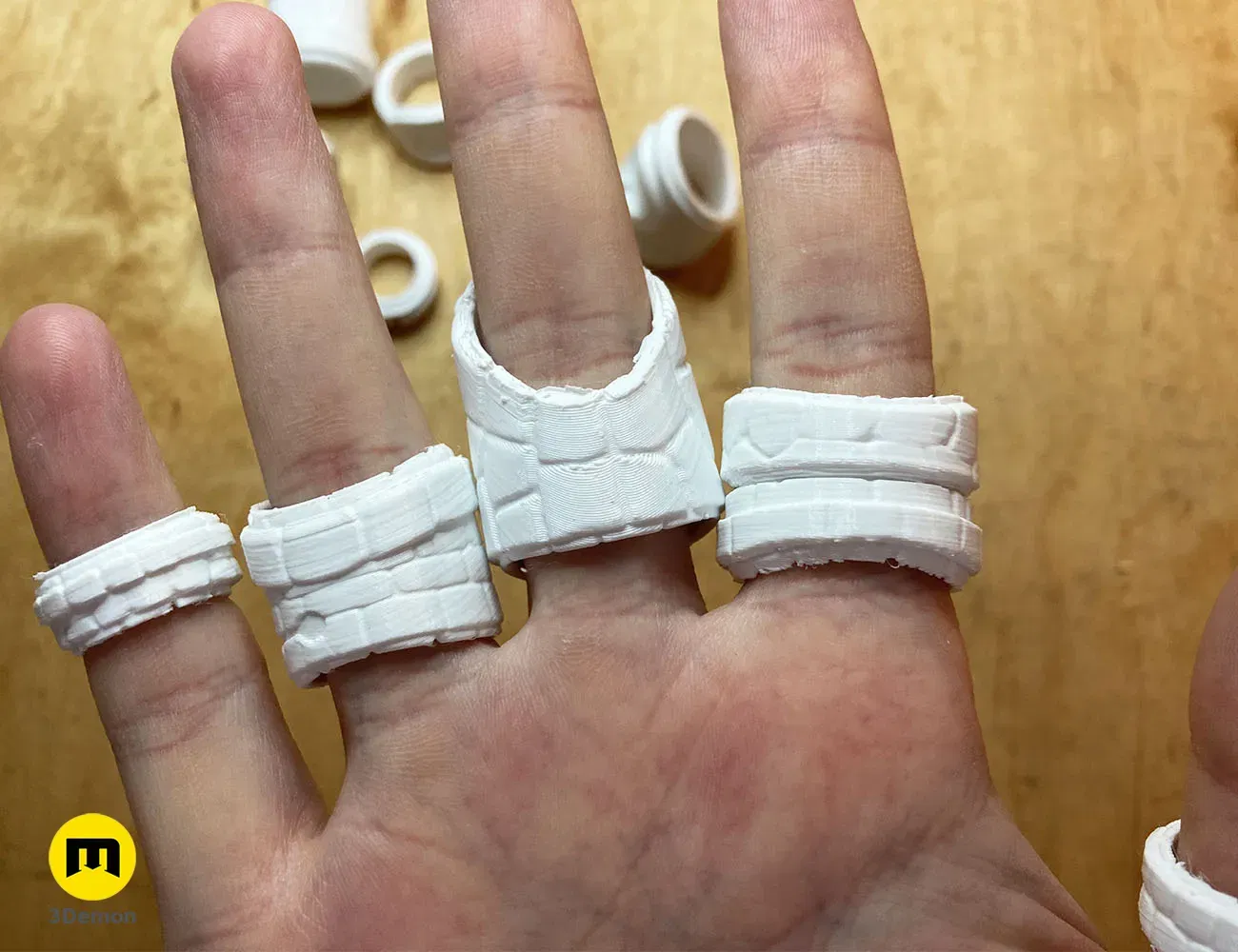 Ở tỷ lệ 100%, kích thước của mỗi nhẫn khoảng: Chiều rộng 20 mm Chiều dài 20 mm Chiều cao 30 mm Bạn có thể thay đổi tỷ lệ của mô hình theo ý muốn nhưng chúng tôi không thể đảm bảo rằng ở kích thước nhỏ hơn nhiều, mô hình sẽ in tốt.