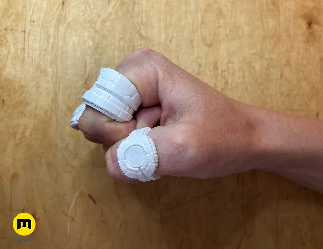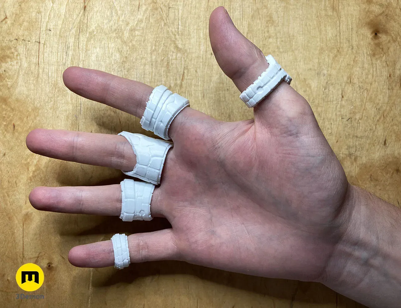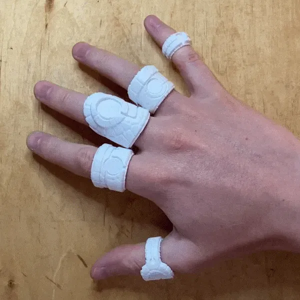Các nhẫn được điều chỉnh cho bàn tay người và có thể được đeo thoải mái mà không bị hạn chế chuyển động.