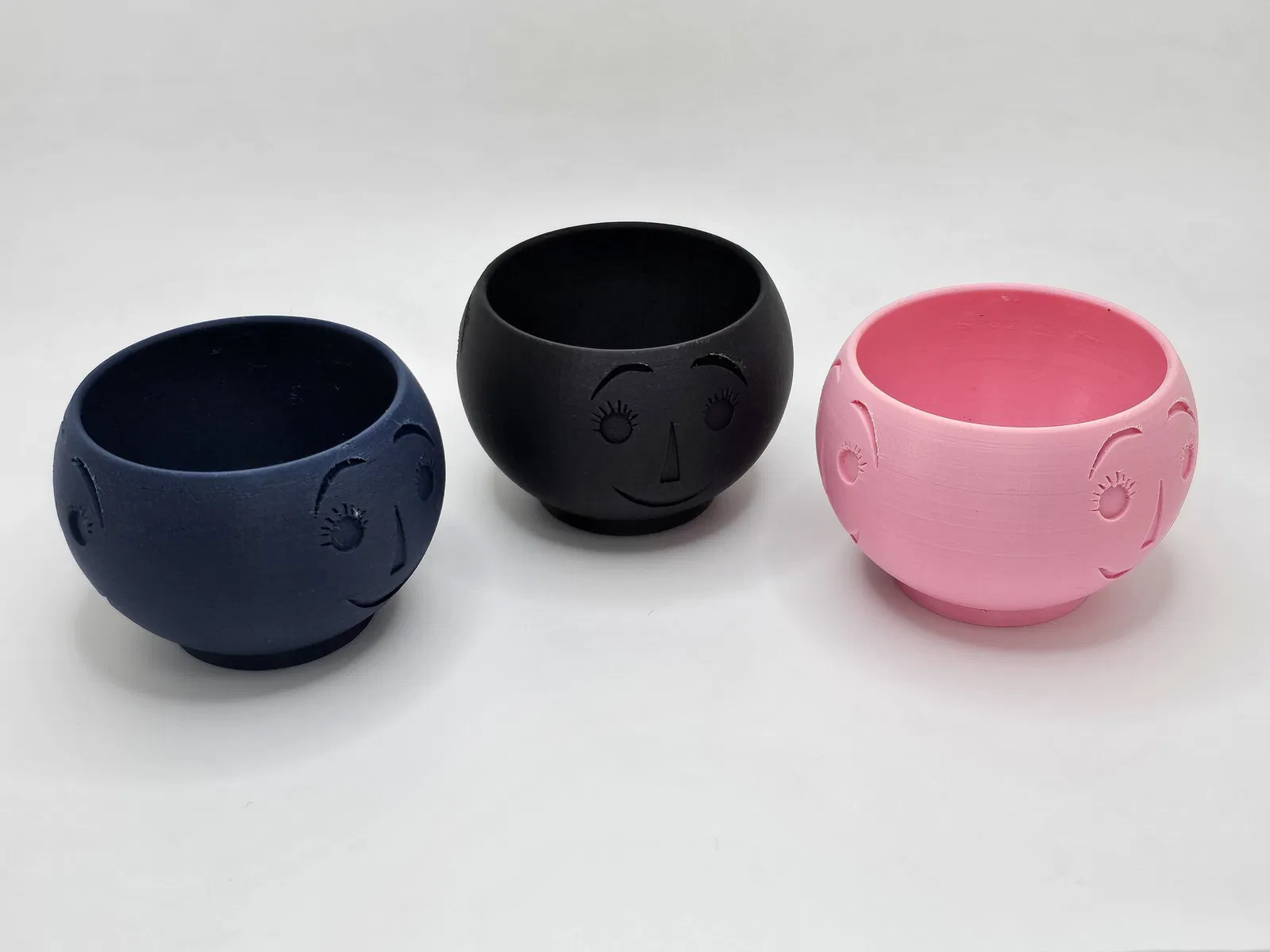 Cốc gieo hạt nhỏ. 40mm ở đáy, 70mm ở chỗ rộng nhất, 50mm cao. Mô hình này chắc chắn và sẵn sàng để sử dụng trong nhiều năm. Sử dụng Midjourney để tạo ra thiết kế mặt. Đây là một thử nghiệm thú vị.