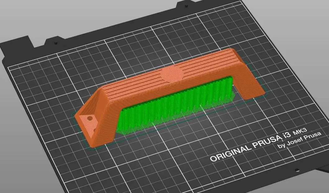 In với giá đỡ (xem ảnh chụp màn hình) và PETG hoặc ABS được khuyến nghị cao (PLA sẽ quá mềm trong một ngày nóng).
