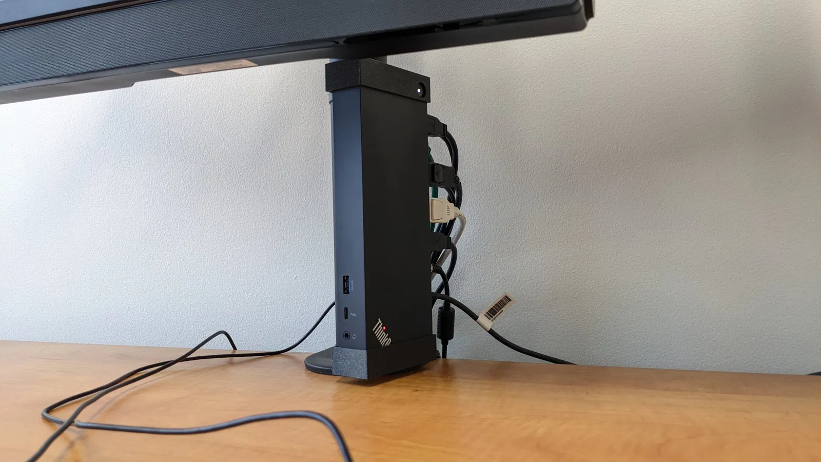 Tôi có một vài giá đỡ màn hình tại nơi làm việc mà tôi muốn gắn các dock Lenovo Thunderbolt 3/4 của chúng tôi vào để giải phóng một số không gian trên bàn.