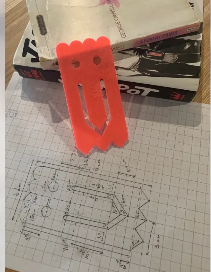 Đây là một kẹp giấy 'Ma' được thiết kế để giữ các tài liệu rời lại với nhau. Nó cũng rất linh hoạt và có thể được sử dụng cho các mục đích khác, chẳng hạn như một dấu trang. Kích thước khoảng bằng một thẻ ghi chú, nó đo 13 x 6 x 0.15cm. Tôi đã làm điều này cùng với đối tác của mình, Shawn Shknevsky