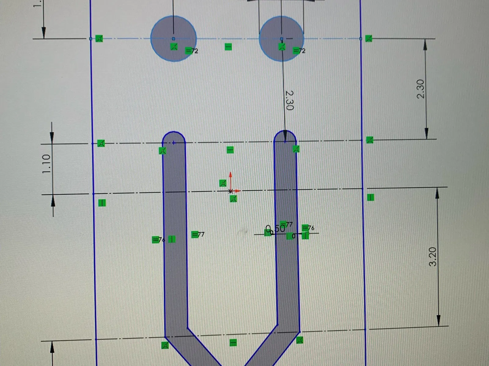 3. Lặp lại quy trình tương tự như ở bước 6, tuy nhiên lần này tạo ba cung tại các điểm Y, W và U. Thay vì đo kích thước đường kính của cung, thêm một mối quan hệ thủ công làm cho cung bằng với cung X. Gắn điểm bên trái nhất của cung vào điểm bên phải nhất của cung đứng trước nó.