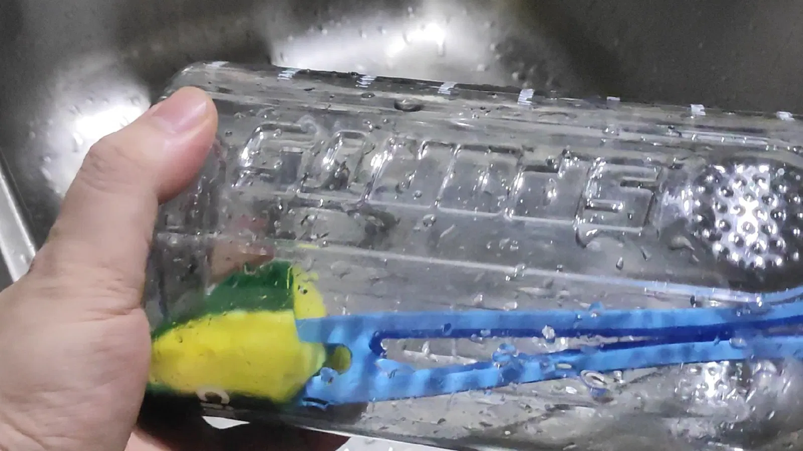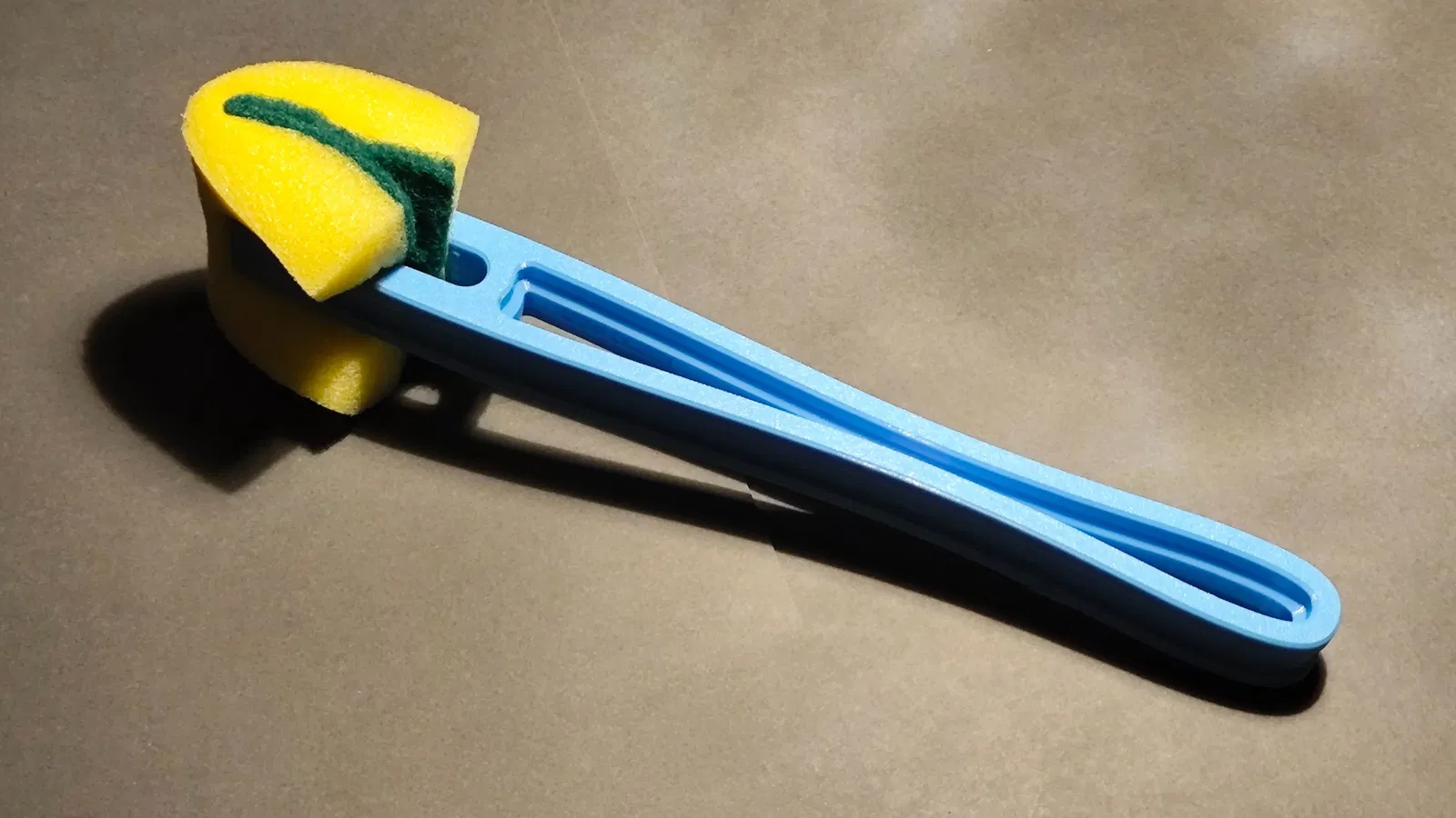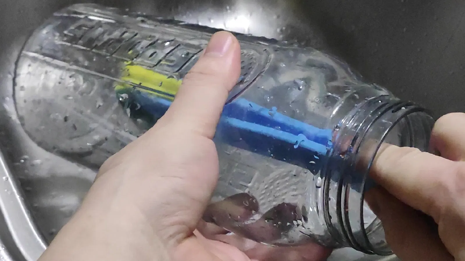 Anh ta chà tay cầm bọt biển có thể được lắp ráp thành một công cụ để làm sạch chai một cách nhanh chóng, dễ dàng và với chi phí thấp.