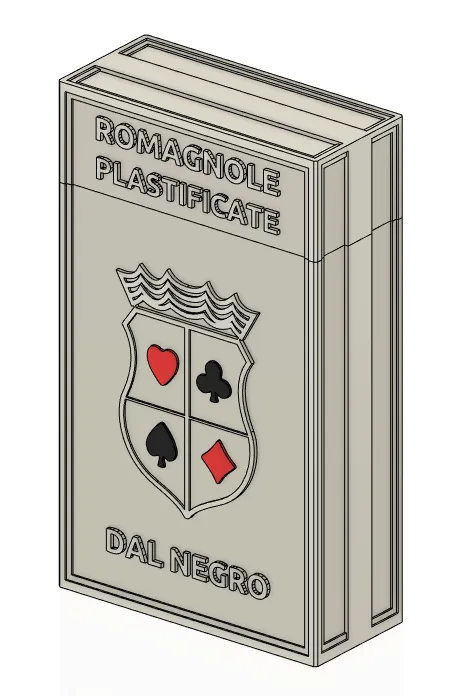 Đây là một hộp cho thẻ Briscola. In các phần với màu sắc của tên tệp. Phần trên cùng của thân cần hỗ trợ. Để in thân nhanh hơn, hãy in phần trên cùng của thân lật ngược với hỗ trợ. Sử dụng keo để dán các phần vào thân.
