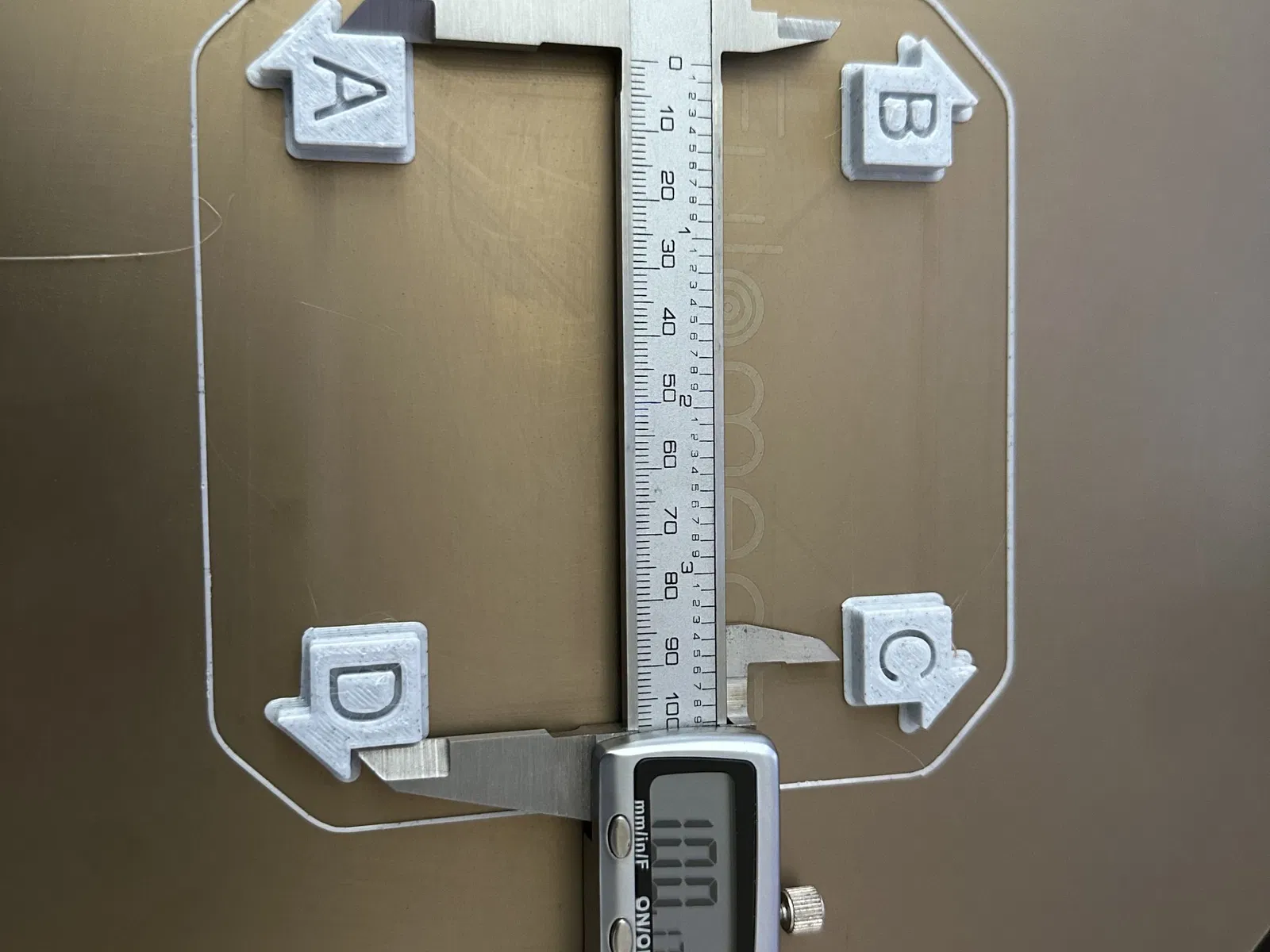 In và đo trên bề mặt in. Sự bám dính của bề mặt là rất quan trọng khi bạn in mô hình này. Một số vật liệu sẽ tách khỏi bề mặt khi nó nguội. Hãy chọn một cách khôn ngoan.