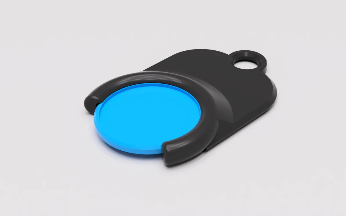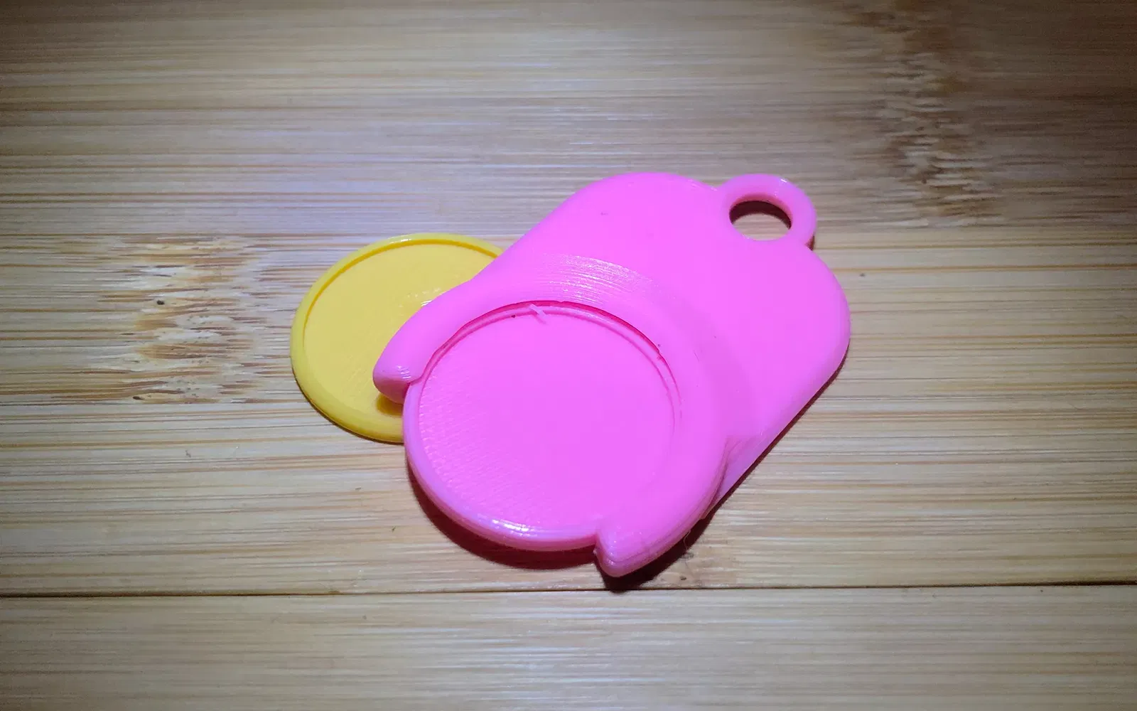 Một móc khóa tiền xu giỏ hàng đơn giản. (Kích thước đồng xu là 23,25 mm đường kính và 2,125 mm chiều cao, tương đương với đồng xu 1 €, tương ứng khoảng với đồng xu 1 CHF hoặc 1 £ của Vương quốc Anh)
