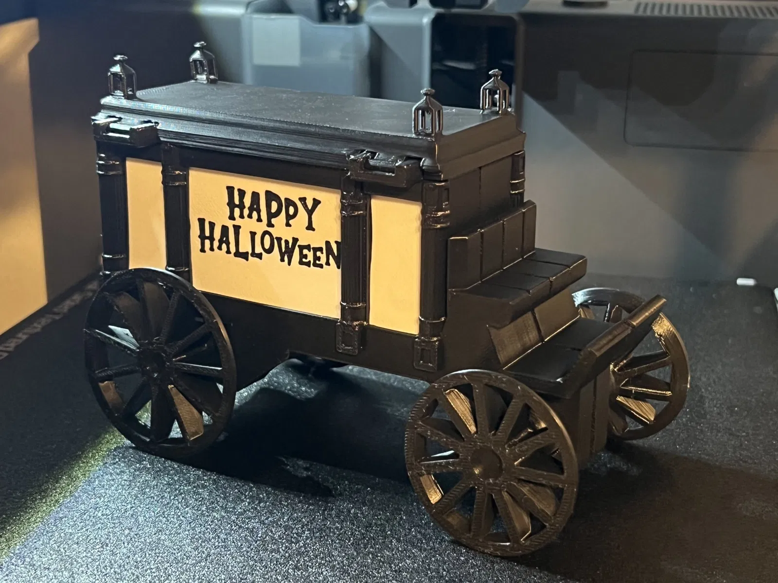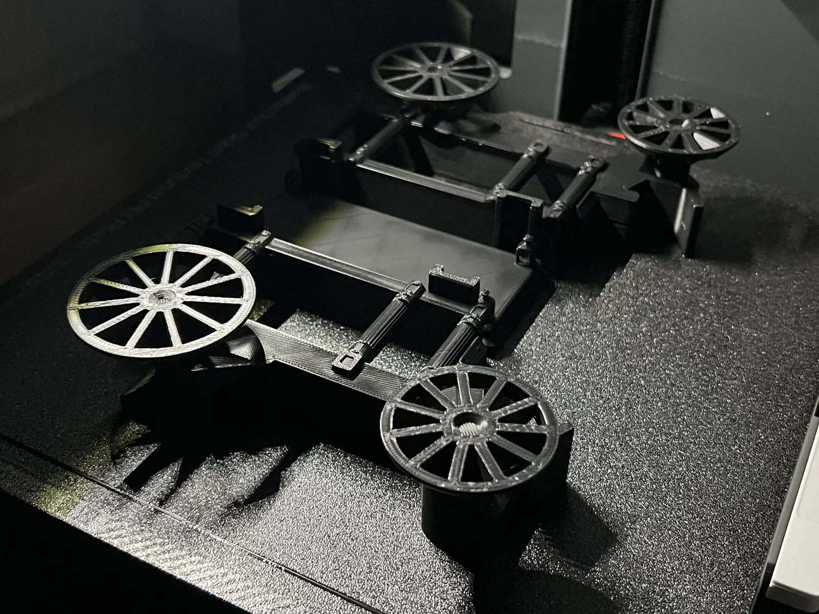 Bánh xe được khóa vào thân mô hình trong quá trình in để đảm bảo không có gì rơi khỏi bàn in trong quá trình in, nhưng có thể được tách ra và xoay sau khi in.