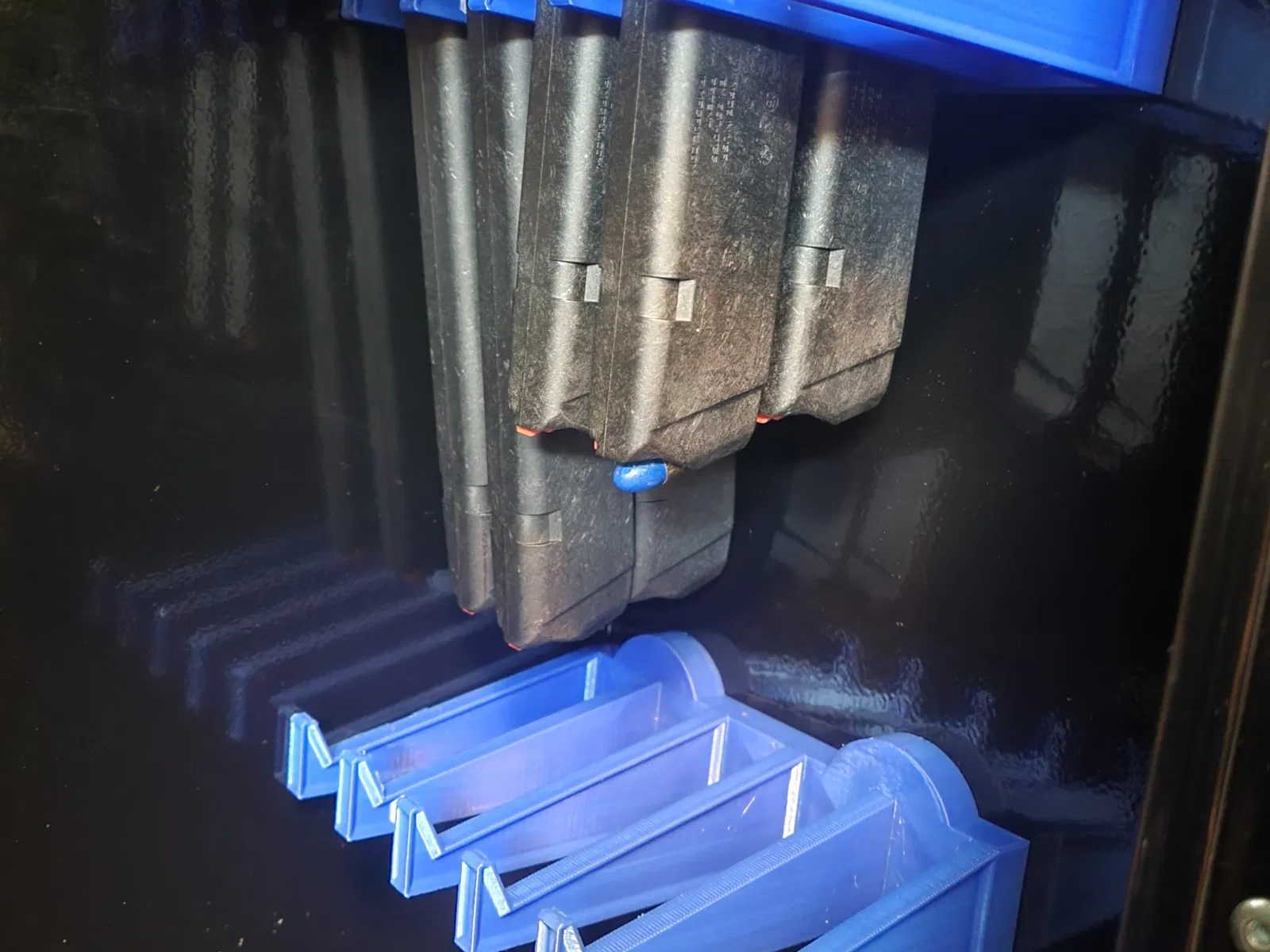 Nó sử dụng nam châm để gắn vào két an toàn hoặc tủ súng của bạn. Các nam châm có thể được tìm thấy trên Amazon. Những nam châm này rất mạnh và sẽ giữ các băng đạn đã nạp đầy một cách an toàn (mặc dù tôi không hiển thị băng đạn đã nạp trong bức ảnh… sau ngày bắn và tất cả).