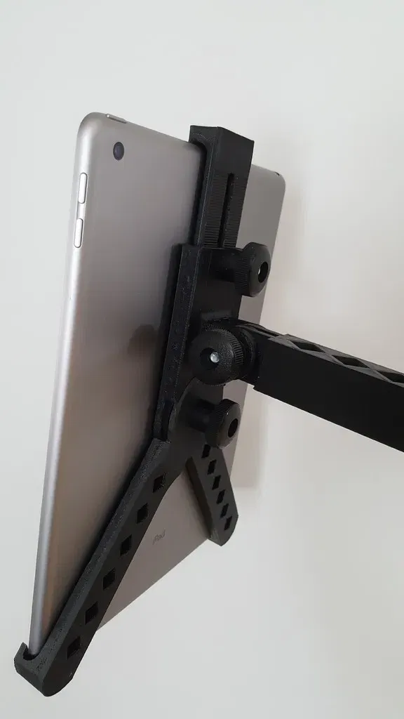 Giá đỡ iPad cho Gen 5 (2017). Sẽ hoạt động cả theo chiều dọc và chiều ngang, và sẽ phù hợp với hầu hết các giá mic và giá nhạc. Có nhiều kích thước tay cầm và khớp xoay khác nhau để phù hợp với hầu hết các nhu cầu. Tất cả đều có thể thay thế cho nhau nên bạn có thể in nhiều bộ phận và sự kết hợp theo nhu cầu. Các bức ảnh không hiển thị tất cả các bộ phận đang sử dụng. Tôi đã sử dụng Form Futura TitanX ABS.