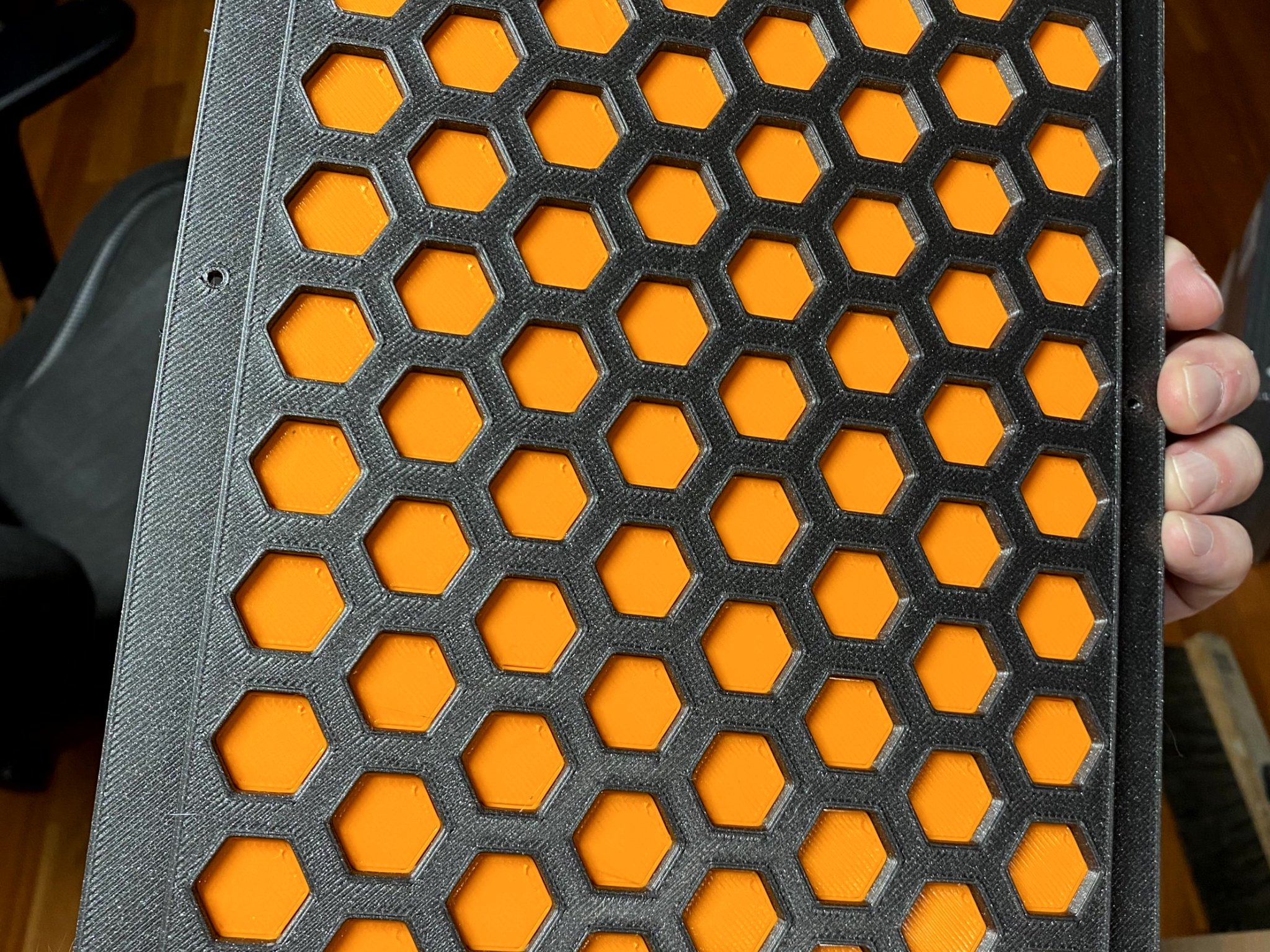 Tôi đã nhận bộ Prusa XL hai đầu của mình cách đây hai tuần, thật là to quá! Ban đầu tôi gặp chút khó khăn nhưng bây giờ nó in rất ấn tượng, xem các bức ảnh. Vấn đề chính của tôi bây giờ là XL so với mk3s thì siêu ồn, vì vậy tôi đang tìm kiếm những chỗ phát ra tiếng ồn và nguồn ồn chính là các tấm kim loại khắp nơi trên XL. Những cái dễ thay thế là các tấm bên phía sau và đây là thiết kế của tôi, các bức ảnh chưa hoàn chỉnh, và tôi sẽ chụp những bức tốt hơn khi tôi in phần cuối cùng (đang chờ một ít filament màu cam để hoàn thành phần bên trong với 2 màu để tạo ra một chủ đề giống Prusa. Đó là lý do cho công việc đang tiến hành. Hiện tại tôi đã in tất cả các phần bằng PLA Galaxy Black của Prusa, phần tay cầm trên cùng ở độ cao lớp 0,4 và 50% độ đầy rất ổn định. Phần dưới ở 20% độ đầy và cũng ở 0,4 với đầu phun 0,6 tiêu chuẩn, các phần trông rất đẹp không thể tin được là tốt như vậy. Lý do chính là đây vẫn là những bản in thử nghiệm để có được độ dung sai đúng và vân vân, nhưng tôi đã in với chúng hơn một tuần trong vỏ kín (sẽ có thêm về điều đó sớm) và không gặp vấn đề gì, có thể tôi sẽ giữ lại PLA, nhưng kế hoạch là sử dụng PETG. Và cũng vậy, các phần in của Extruder không thân thiện với âm thanh và cũng có thêm một số trọng lượng, Extruder rất nặng, nhiều khối lượng được di chuyển xung quanh vì vậy khối lượng ít hơn sẽ ít tiếng ồn hơn. Đối với phần dưới lớn, tôi đã đặt vật liệu giảm âm bên dưới từ Car Hifi, nhưng tôi đang ở giữa thiết kế một phần in 3D. Ngoài ra, các phần kim loại bên trái và bên phải ở trên cùng đang phát ra nhiều âm thanh, nhưng chúng có một loại cấu trúc, vì vậy tôi cũng đang ở giữa thiết kế một cái gì đó với các thanh carbon để giải quyết sức mạnh cấu trúc và giảm tiếng ồn. Sớm thôi tôi sẽ tải lên video về âm thanh hiện tại. CẬP NHẬT 30. 09. 2023 Điều chỉnh kích thước và độ vừa của các phần, các đai ốc vít m3 bây giờ nên vừa vặn mà không cần làm nóng phần trước khi chèn. Cập nhật 10. 10. 2023 Ở đây bạn tìm thấy một video Timelaps về phần thứ ba In lớp đầu tiên thật tuyệt vời! [yt]https://www. youtube. com/embed/91tKp2ydb5I&feature=youtu. be[/yt]Chúc bạn vui vẻ trong quá trình In