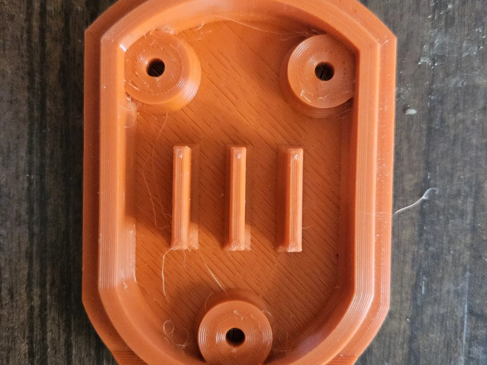 Tôi đã bao gồm trong thiết kế một lớp hy sinh đơn trong các lỗ vít để tránh cần phải có giá đỡ. Tôi đã in chúng bằng TPU và chúng đứng rất tốt.