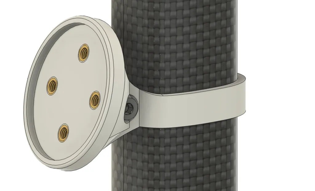 Một giá đỡ Garmin Varia tùy chỉnh cho xe đạp ENVE Melee sử dụng các chèn nhiệt để gắn một chèn K-edge và một bu lông và đai ốc M4X20 để giữ chặt kẹp.