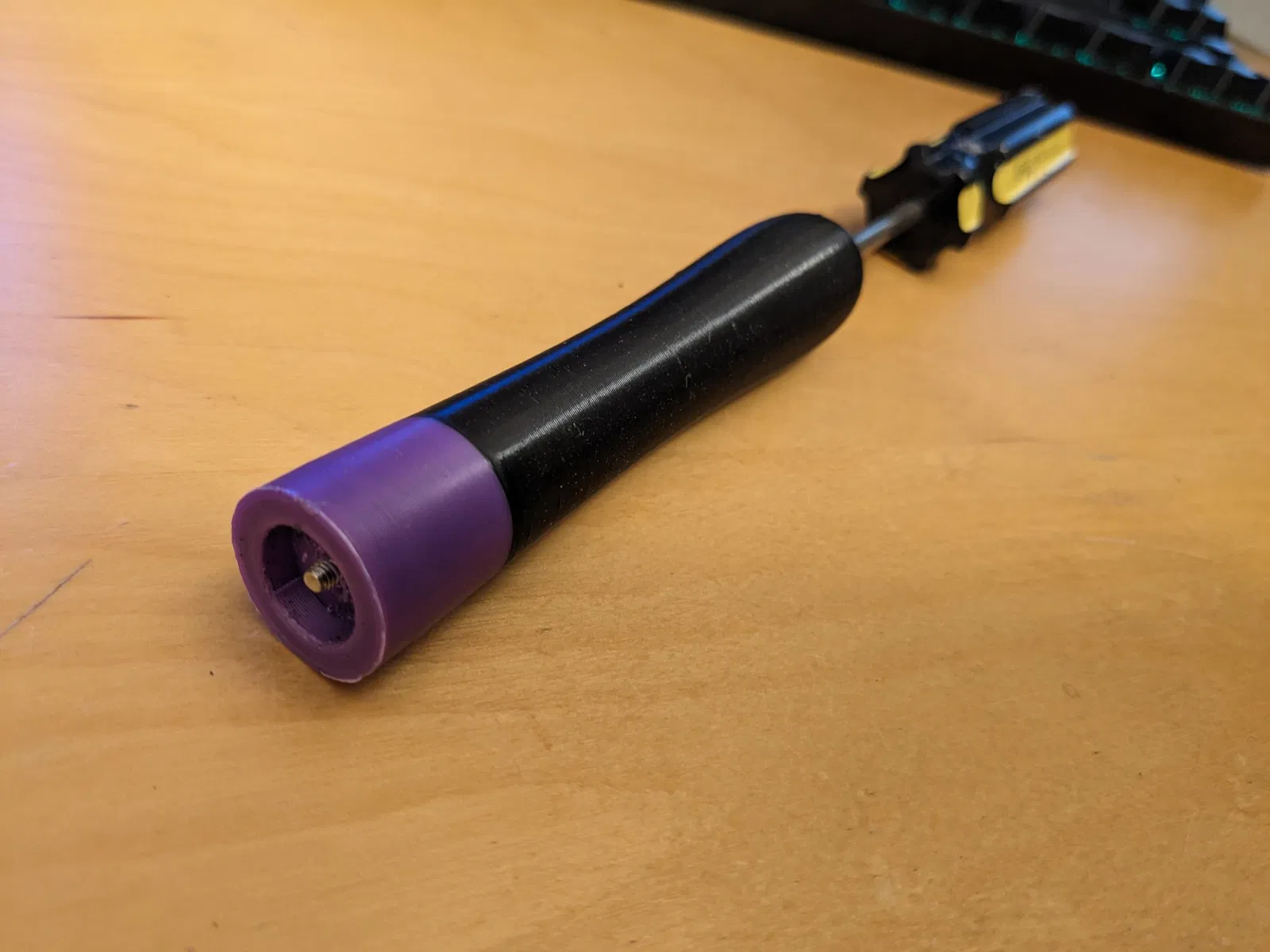Cán này có đường kính khoảng 21mm ở đầu bàn chải. Tôi đã sử dụng một con vít M3 để cố định cán vào đầu. Bạn sẽ cần một cái tuốc nơ vít khá dài (tối thiểu 11cm).