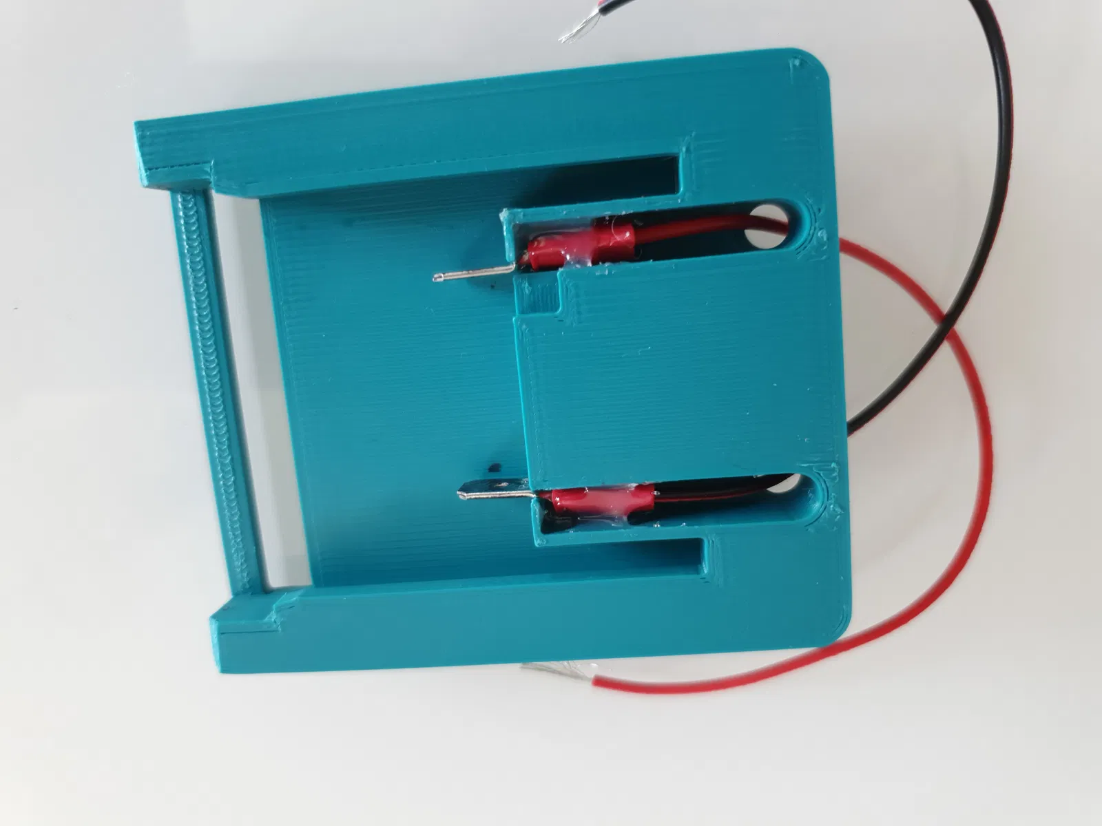 - có vạch chỉ báo cực âm và cực dương Nên để support nếu in như mình tải lên. Cái hình cuối cùng cho thấy mình in như thế nào với support. Mình xài cách 4mm giữa object và support. Nếu xoay 180° thì không cần support đâu nha. File CAD mình có đính kèm nè. Ai thích thì cứ remix nha.