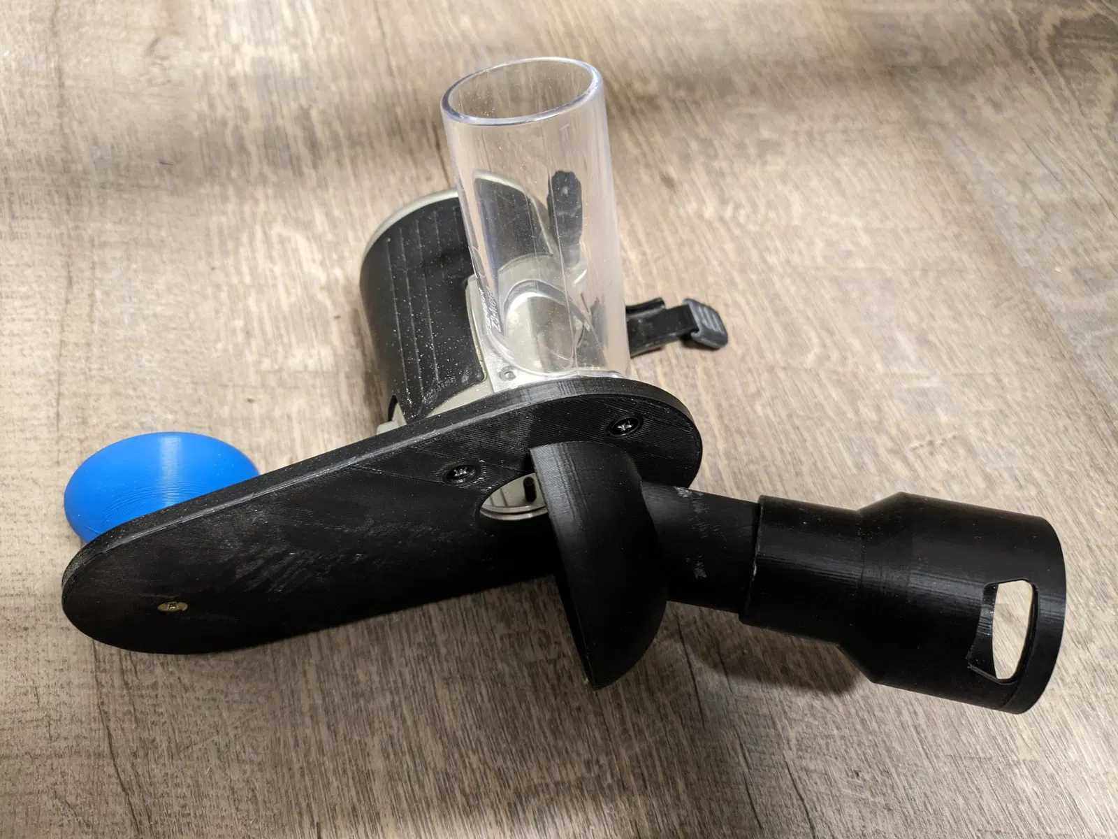 Bộ điều hợp xung quanh máy hút bụi pin trên tấm đế của Tobbegegraf (ThingiVere) cho Makita RT0700.