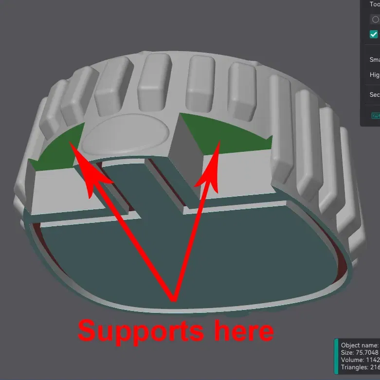 "Tất cả các loại rau kém đều được coi là kẻ thù của Daleks và phải bị tiêu diệt!" Đây là một quả bí ngô Dalek được lấy cảm hứng từ những kẻ thù vĩ đại nhất của The Doctor. Tiêu đề đã nói lên tất cả! Ghi chú về in ấn và lắp ráp: Hầu hết các bộ phận có thể được in với các hồ sơ cắt khá chung chung. Tôi thường sử dụng 3 lớp viền và 10% độ đặc. Phần dưới cùng là một mảnh đơn sắc, nhưng các gờ có thể dễ dàng được sơn trong hầu hết các slicer hiện đại bằng cách sử dụng một lớp phủ thông minh, nếu bạn có khả năng in hai màu. Phần “Thân bí ngô Dalek” cần một số hỗ trợ. Cách tốt nhất là sử dụng hỗ trợ vẽ tay trong hai khu vực được hiển thị trong hình ảnh. Đầu được gắn vào xoay 90 độ và sau đó xoay để giữ chặt. Các vòng thân không giống nhau. Chúng được đánh số bằng các chấm nhỏ trên bề mặt trên. Chúng nên được trượt vào thân trên theo thứ tự 1, 2, 3 và ấn xuống vị trí. Vì chúng có thể uốn cong, bạn có thể cần xoay bộ phận 360 độ, nhẹ nhàng ấn từng vùng xuống cho đến khi chúng hoàn toàn khít ở mọi chỗ. Đĩa ống mắt nên được ấn chặt vào đầu với hướng dẫn như trong hình minh họa. Nó giữ một ngọn nến trà có đường kính 37mm để chiếu sáng đầu và mắt. Để đảm bảo mắt phát sáng, hãy in bằng một loại filament trong suốt mà không có độ đặc. PETG trong suốt là một lựa chọn tốt cho điều này. Đừng quên xem đầu bí ngô Cyberman của tôi ở đây: https://www.f3d.vn/3d-model/120208-cyber-pumpkin-lay-cam-hung-tu-cybermen-cua-doctor-who