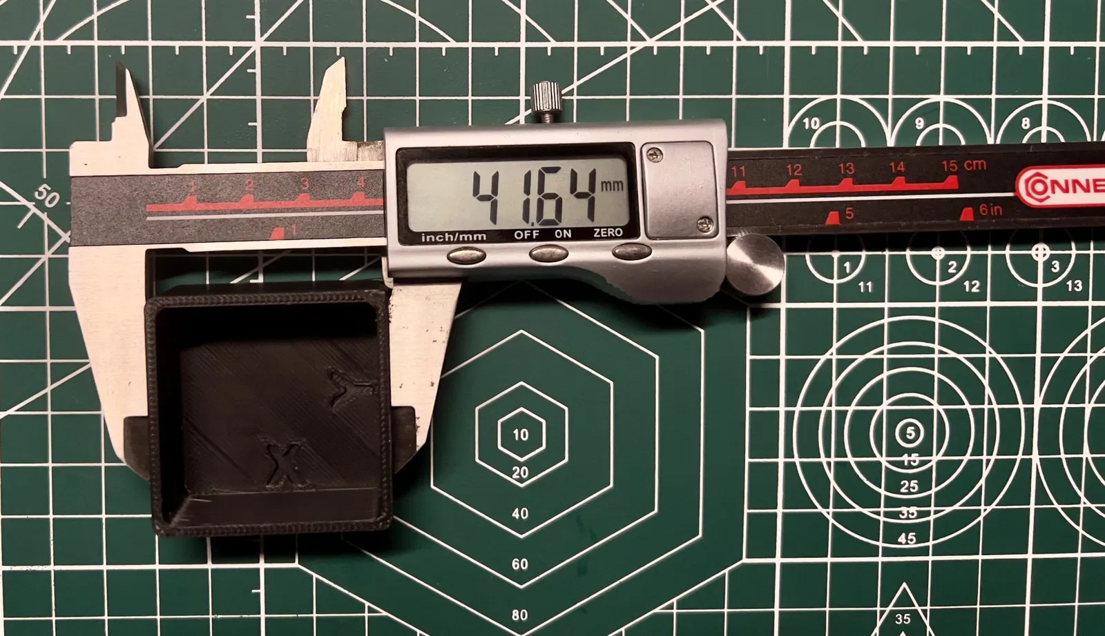 Bây giờ hãy in lại và đo lại. Bây giờ các kích thước (42x42mm) nên vừa vặn.