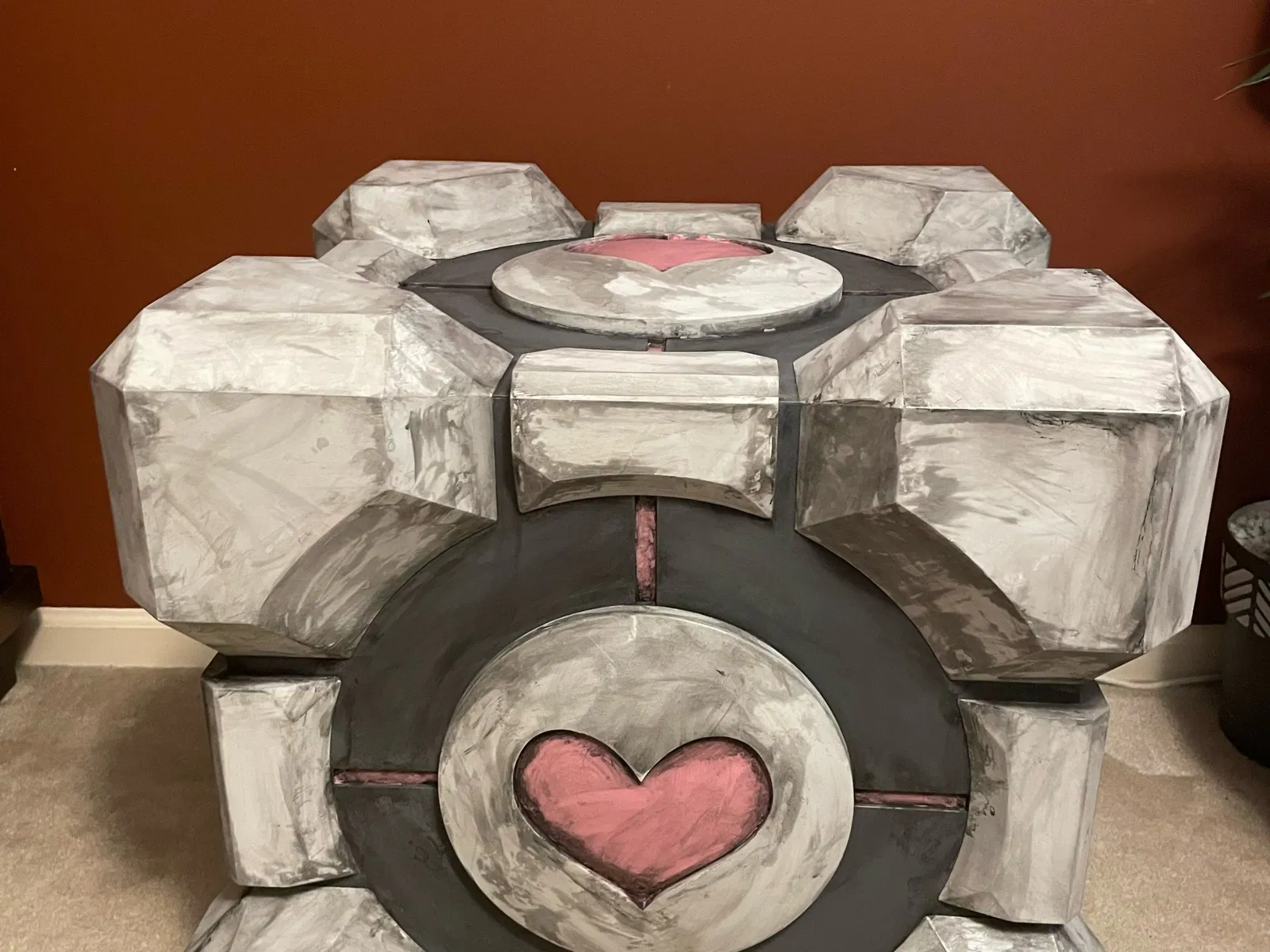 Đây là một mô hình kích thước thật của khối đồng hành từ Portal 1 và Portal 2. Đây là một dự án rất lớn (và nặng) và tôi không khuyên bạn thực hiện nếu bạn không đủ can đảm. Tổng thể nó có kích thước 635mm^3 (25in^3). Dựa trên ước tính của máy cắt, tôi đã sử dụng 15580.48g PLA để in tất cả các bộ phận.