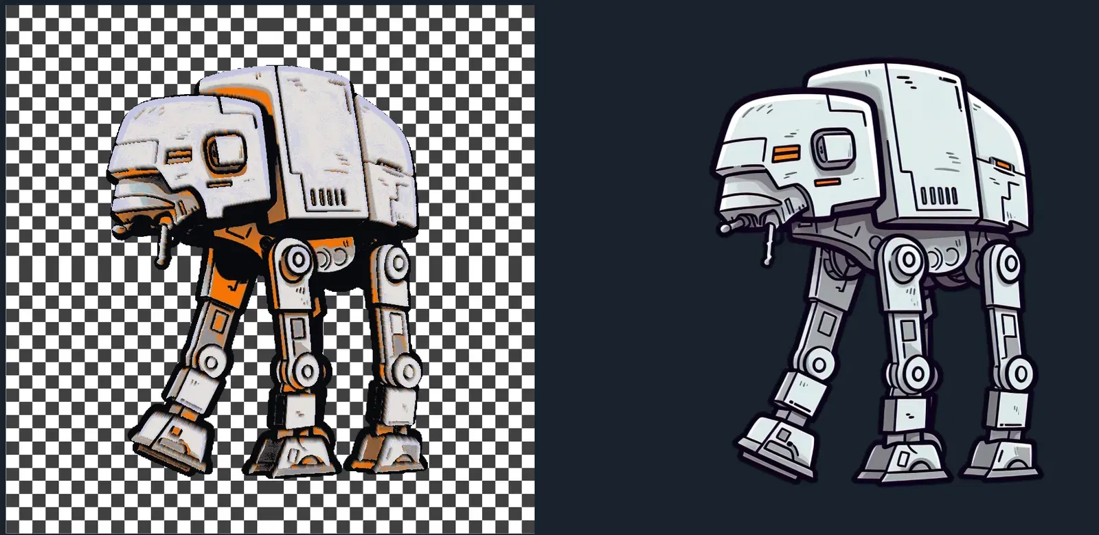 Bức tranh dây tóc của một người đi bộ AT-AT (Tất cả vận chuyển bọc thép trên địa hình) nhiều màu
