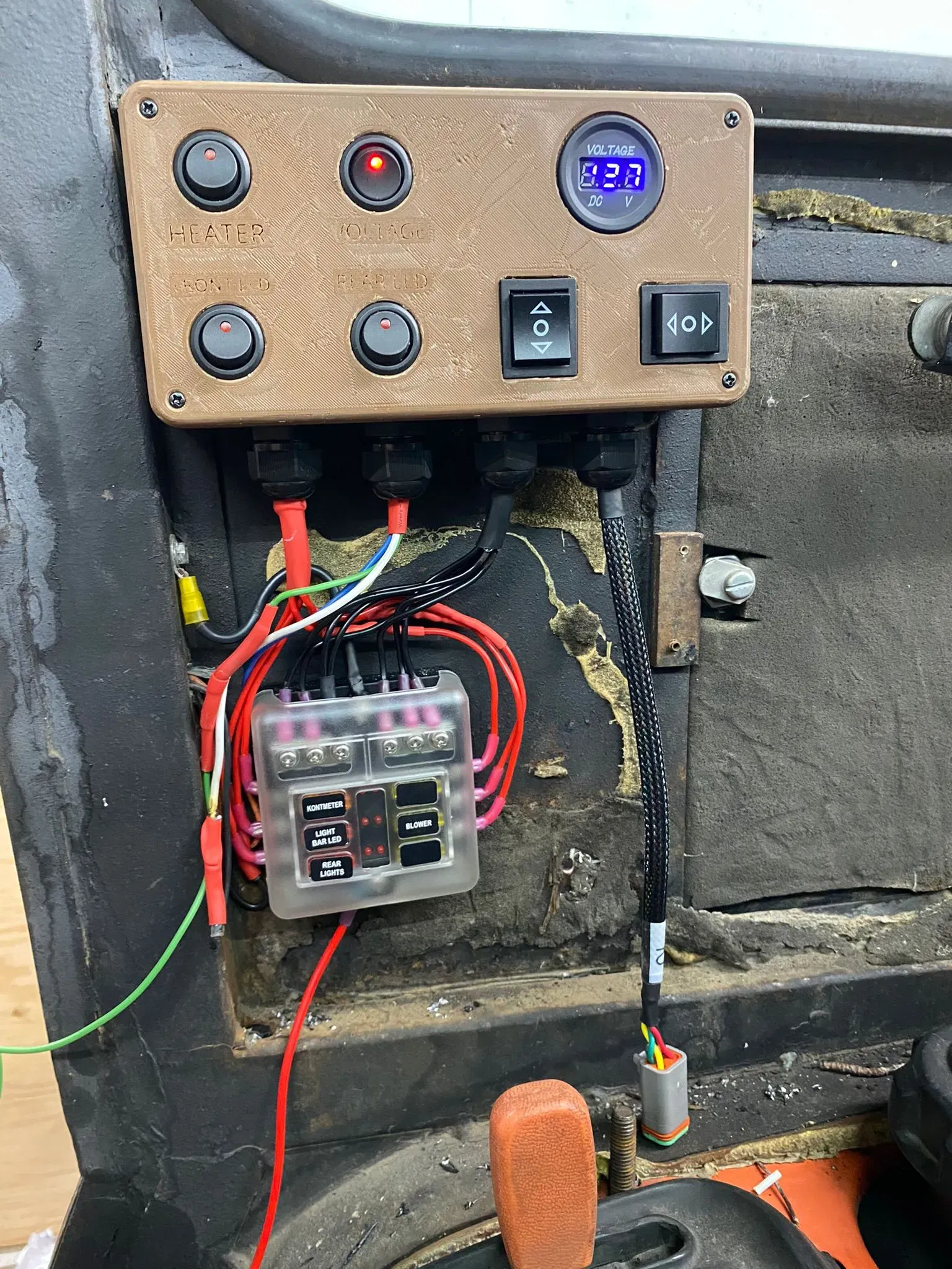 Bao gồm thanh ánh sáng phía trước và phía sau, lò sưởi, đồng hồ đo điện áp lên/xuống và shute trái/phải.