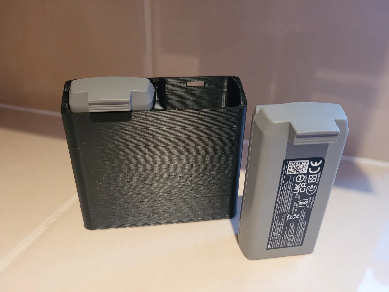 Đây là một giá đỡ pin đơn giản cho 2 pin DJI Mini2. Chúng có một lỗ cắt cho tab khóa để giữ chúng trong giá đỡ một cách an toàn (như chúng làm trong drone).