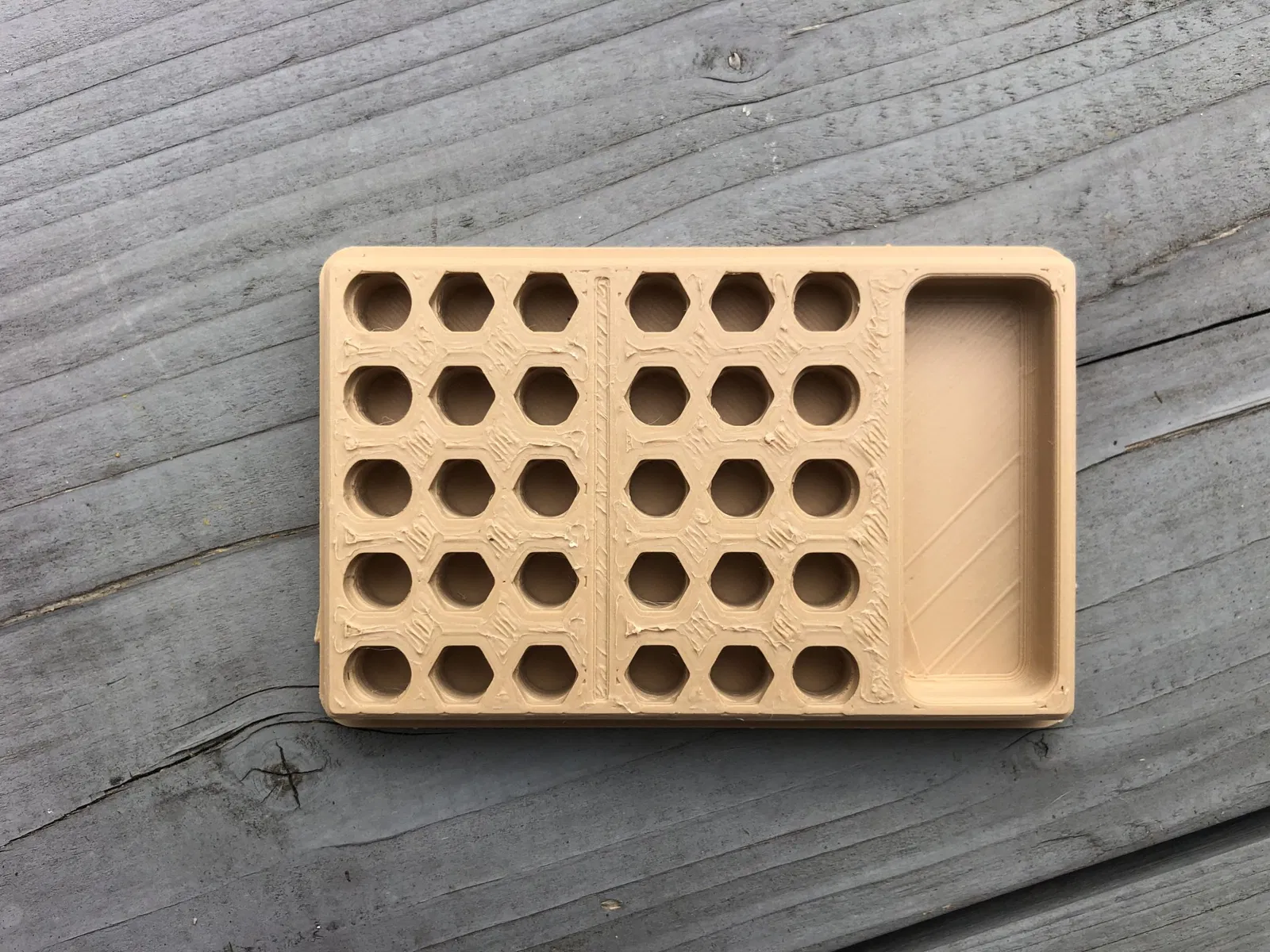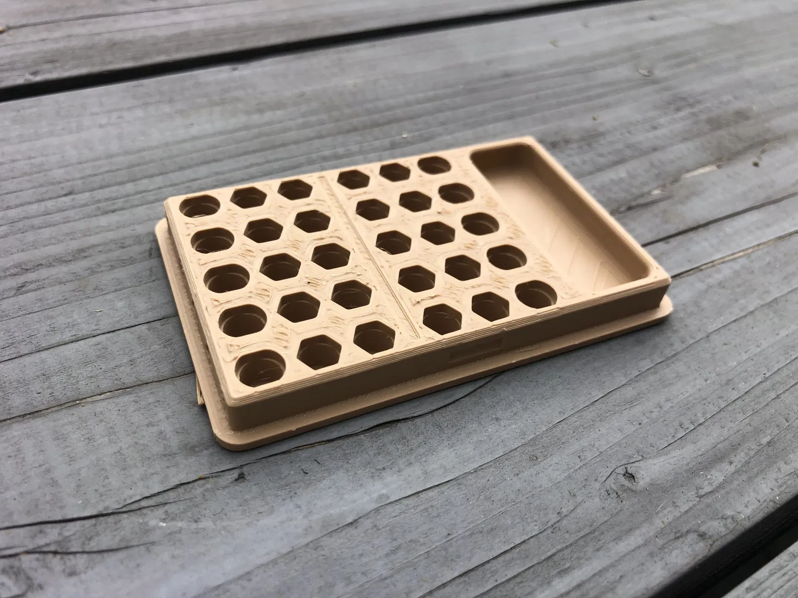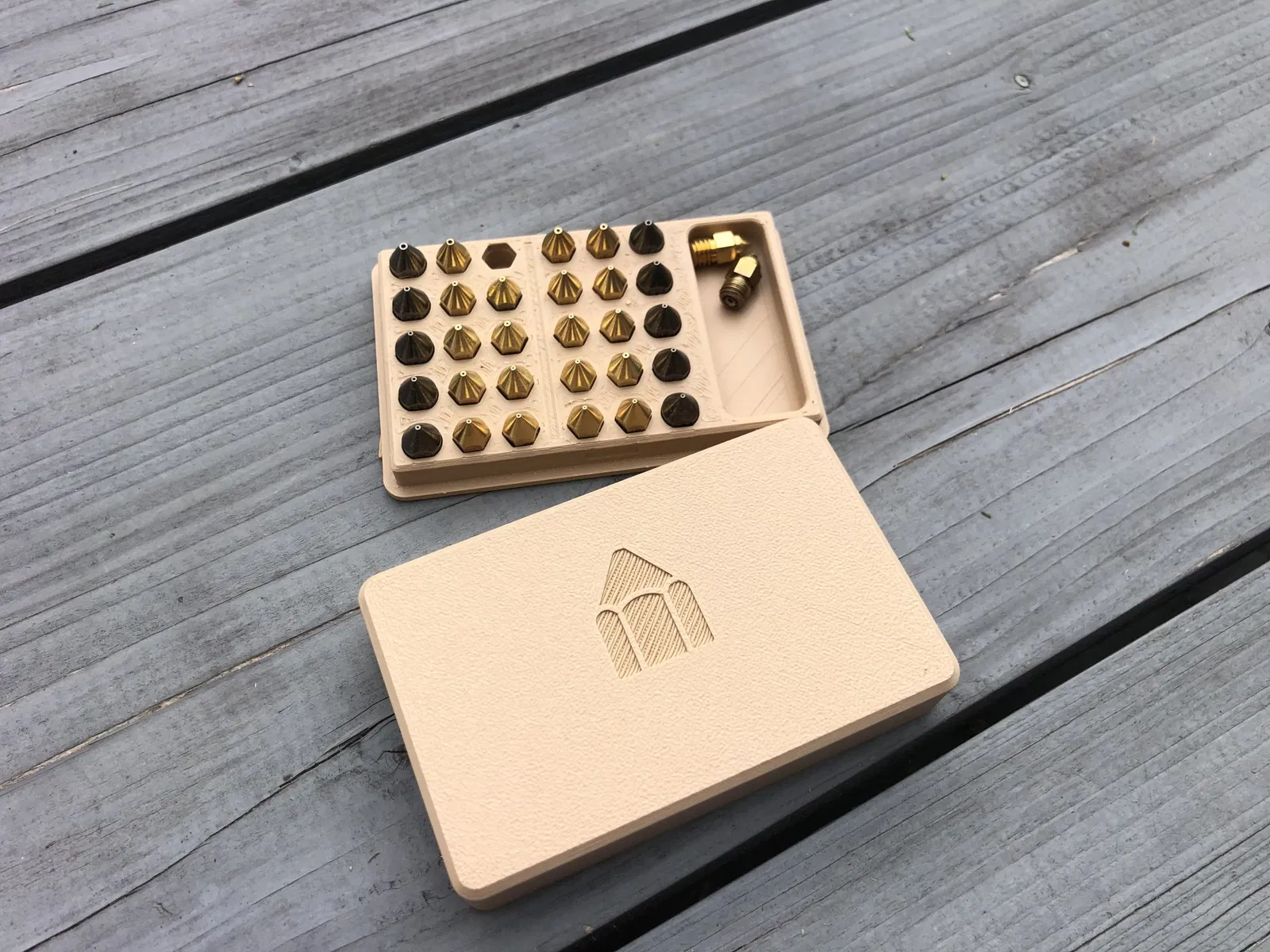 Đây là một khay vòi, có thể chứa 30 vòi. Nó cũng có không gian để lưu trữ vòi thêm. Các dấu hiệu cho kích thước vòi bạn đang sử dụng nằm ở bên cạnh mô hình. Nó được khuyến nghị in nắp với phần trên quay xuống. Nắp khít vào và dễ dàng tháo ra.