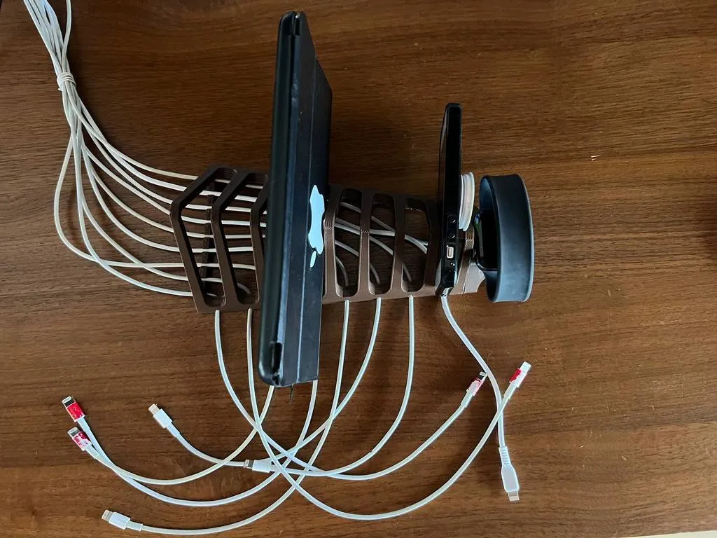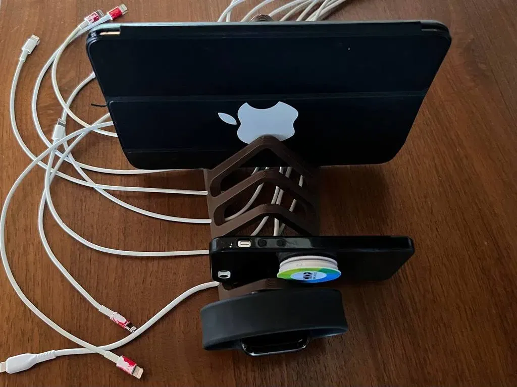 Người tổ chức thiết bị, người giữ và bộ sạc trong một phần. Có thể được in có hoặc không có giá đỡ của Apple Watch Sạc