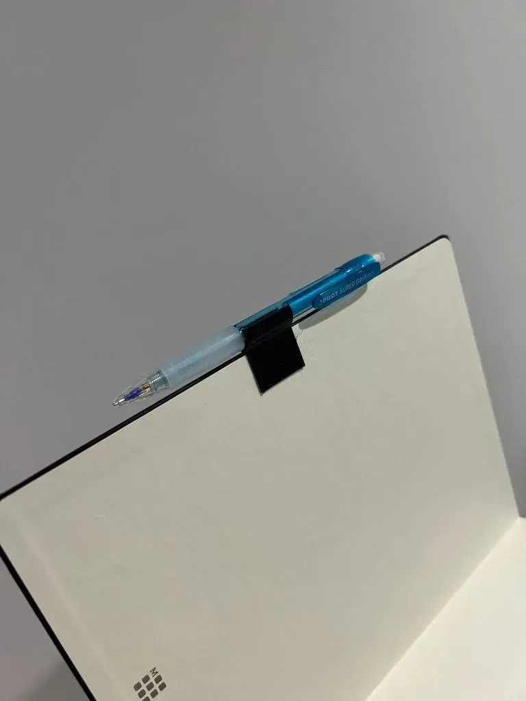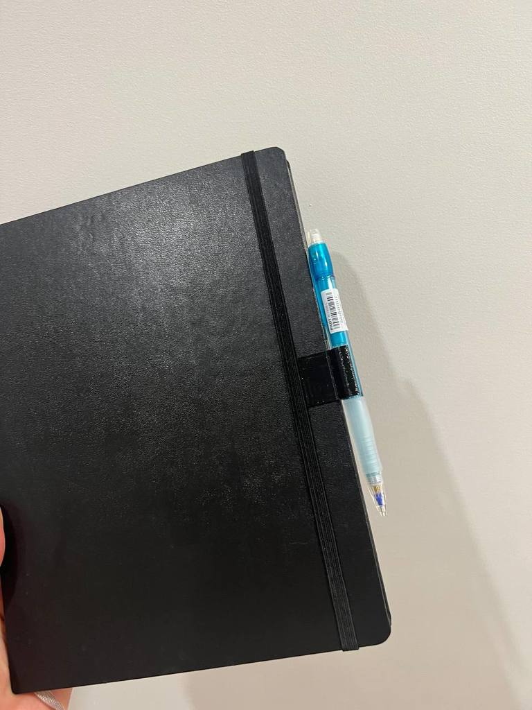 Một kẹp bút hoặc bút chì cho sổ tay bìa cứng Maleskin. Có khả năng giữ bút và bút chì có đường kính 10mm. Tuyệt vời để giữ bút Parker hoặc bút chì cơ khí. Không cần hỗ trợ. Tôi khuyên bạn nên áp dụng băng dính hai mặt vào kẹp để tăng cường độ ổn định và giữ chặt hơn vào sổ tay. Chúc bạn in thành công!