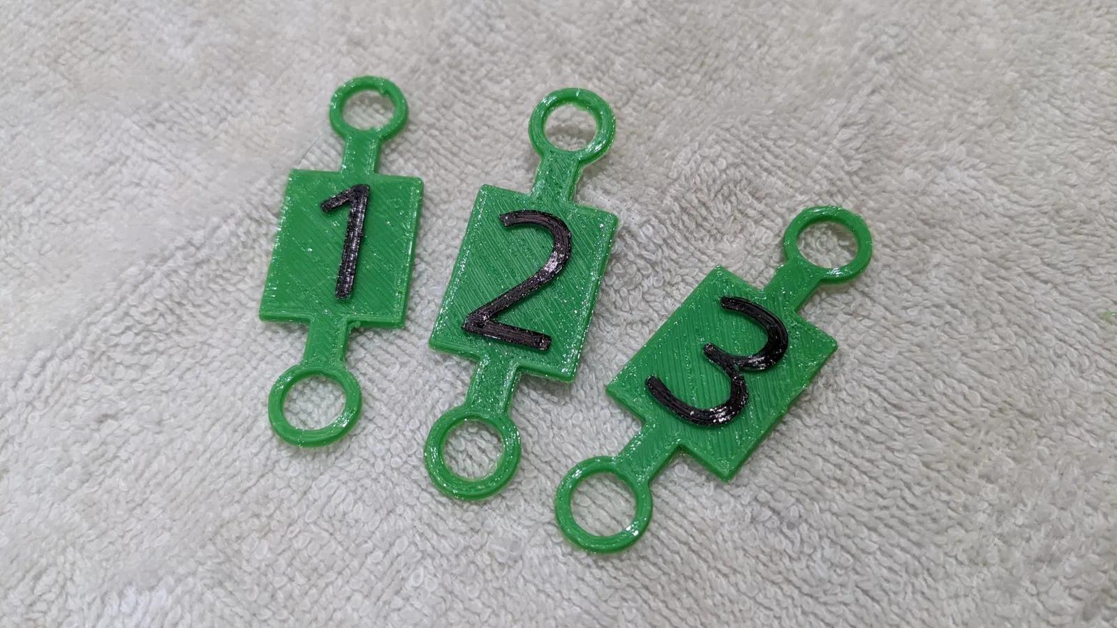 Tôi đã cung cấp một tệp master cơ bản với ba nhãn được đánh số từ 1-3, có thể dễ dàng được chỉnh sửa cho các chữ cái/số khác nhau. Nếu bạn thông minh và chèn một khoảng dừng để thay đổi filament, bạn có thể in số (phần trên 1mm) bằng một màu khác để tạo độ tương phản. Nếu không, một cây bút đánh dấu vĩnh viễn hoạt động rất tốt.