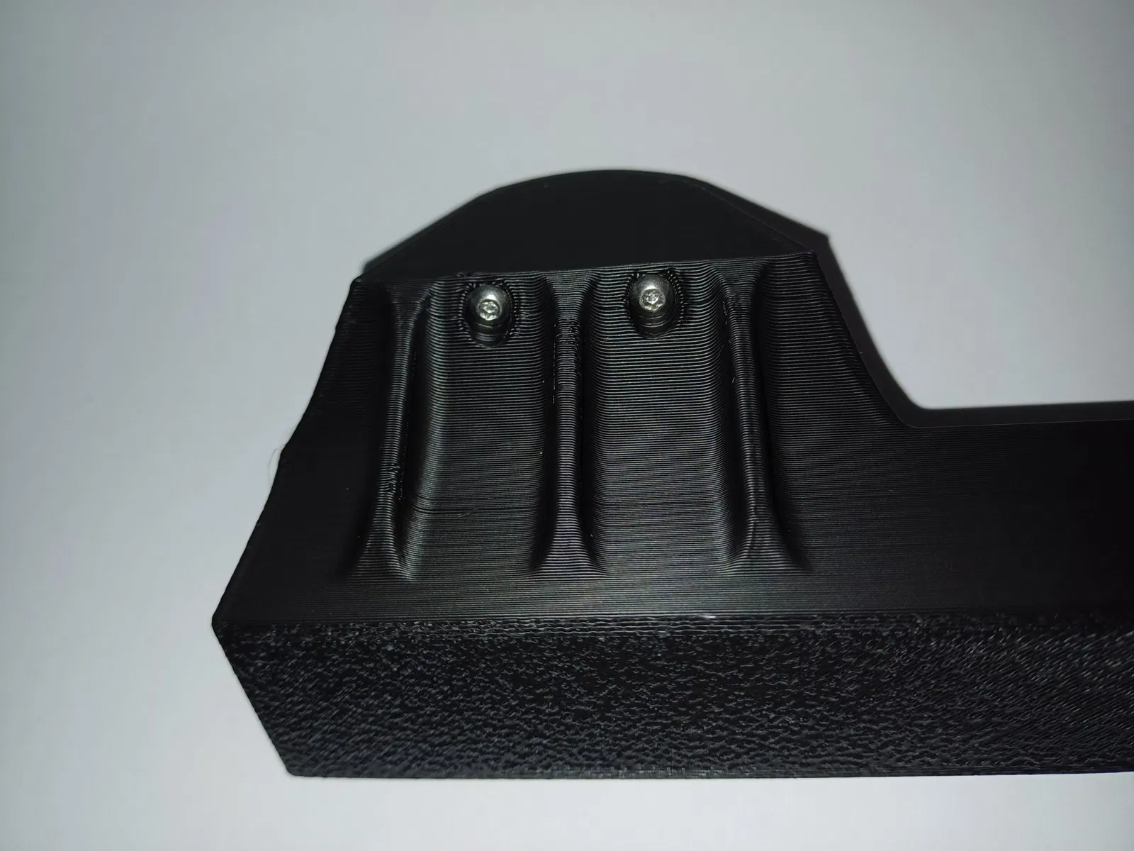 Thay thế này (màu đen) có các gân gia cố và tùy chọn gia cố bằng thép với các vít ở hai khu vực dừng bên ngoài (tôi đã sử dụng 4x vít M3x25) để có độ ổn định cao hơn.