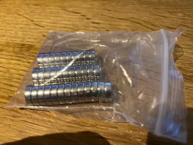 2 nam châm tròn 10x3 vừa với các lỗ ở phía sau (cần một chút lực để gắn).