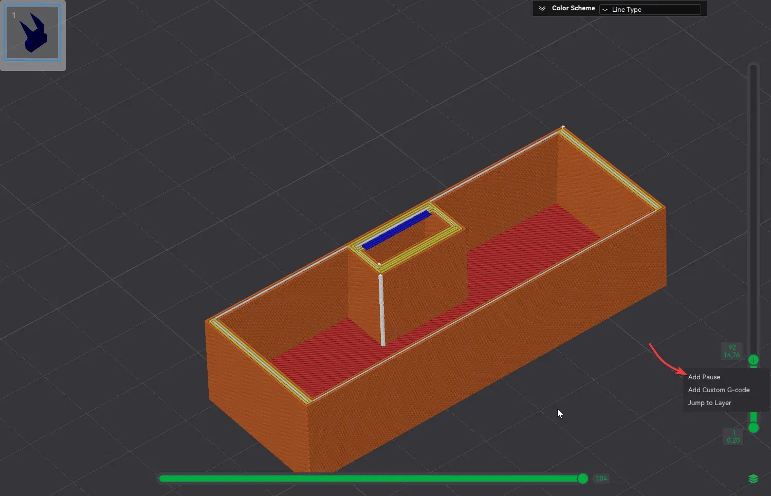 BẠN PHẢI THÊM MỘT ĐỢT TẠM DỪNG TẠI LỚP 92 (hoặc trước khi các bề mặt trên của vỏ nam châm bắt đầu in) đặt nam châm vào giá đỡ và thêm một ít keo siêu dính và chờ 5 phút cho nó khô, sau đó tiếp tục in