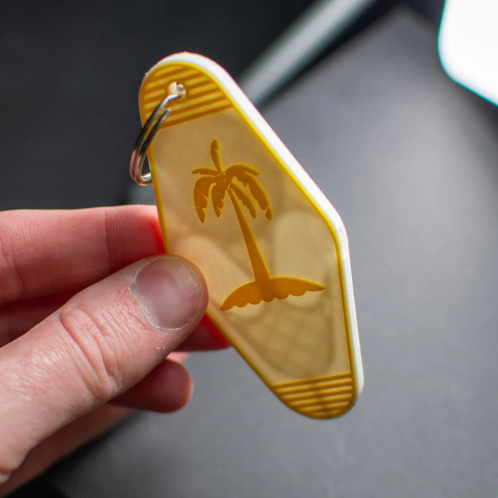 Một thẻ chìa khóa khách sạn với không gian để thêm số/địa chỉ hoặc như tôi đã làm, một minh họa SVG từ Noun Project. Bên trong có một không gian để thêm một thẻ NFC 1". Không chỉ vậy, tôi còn thêm một cái còi bên trong nữa!