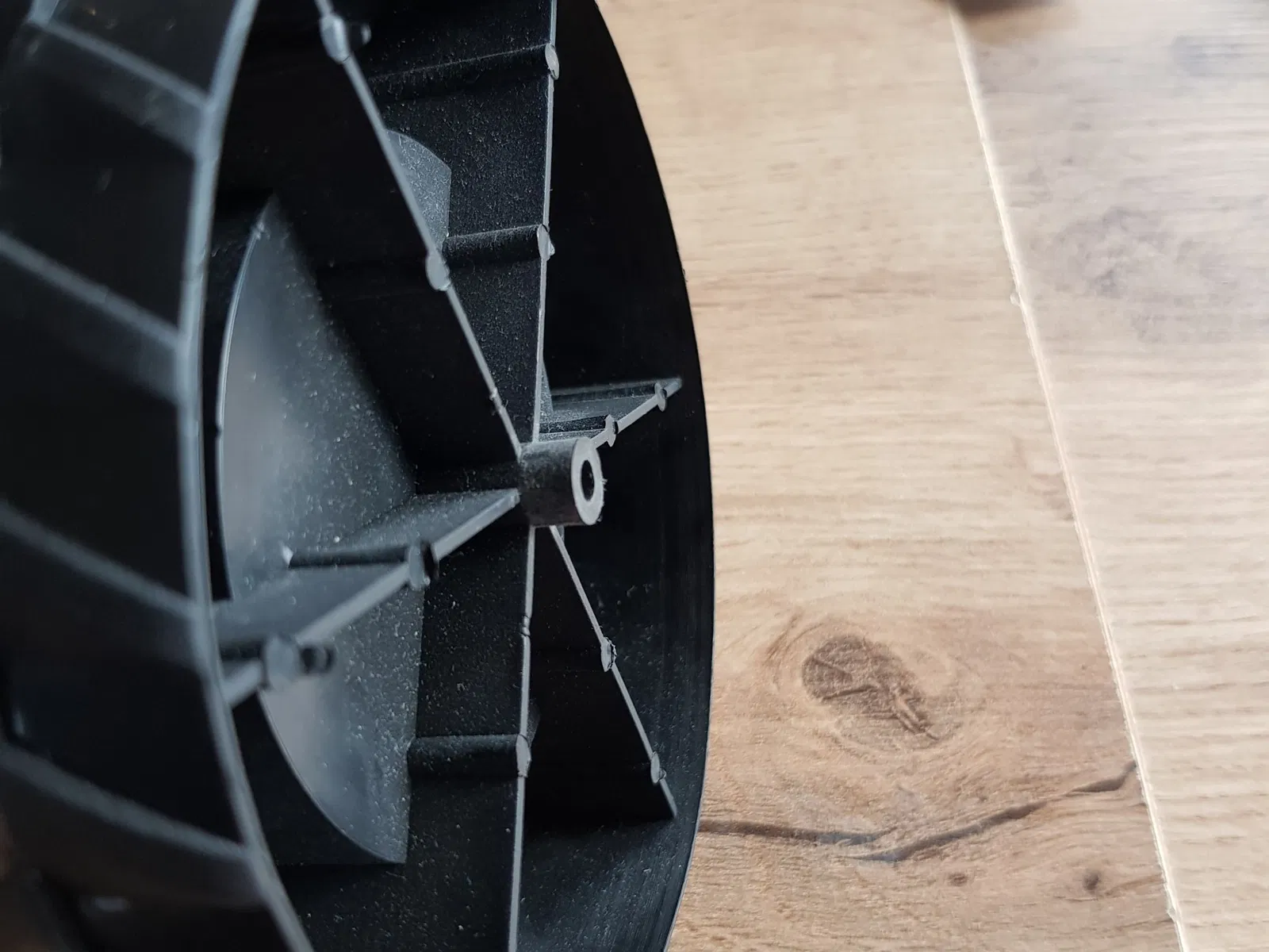 Tôi đã thêm vào phần này một số lỗ nhỏ để có thể bắt vít cho phần còn lại của bánh xe, nhưng sau khi sử dụng cyanoacrylate thì điều đó không cần thiết (đã thử nghiệm bằng cách cho trẻ nặng 14kg ngồi trên máy kéo :))