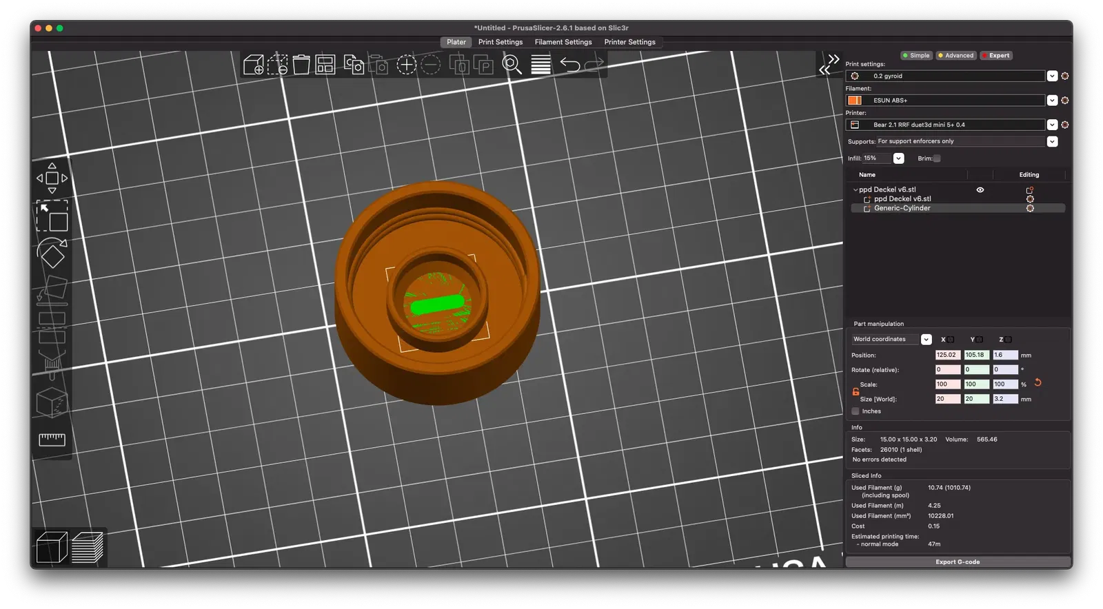 Để in nắp kín, chỉ cần đóng nắp với một đĩa phẳng trong eSlicer.