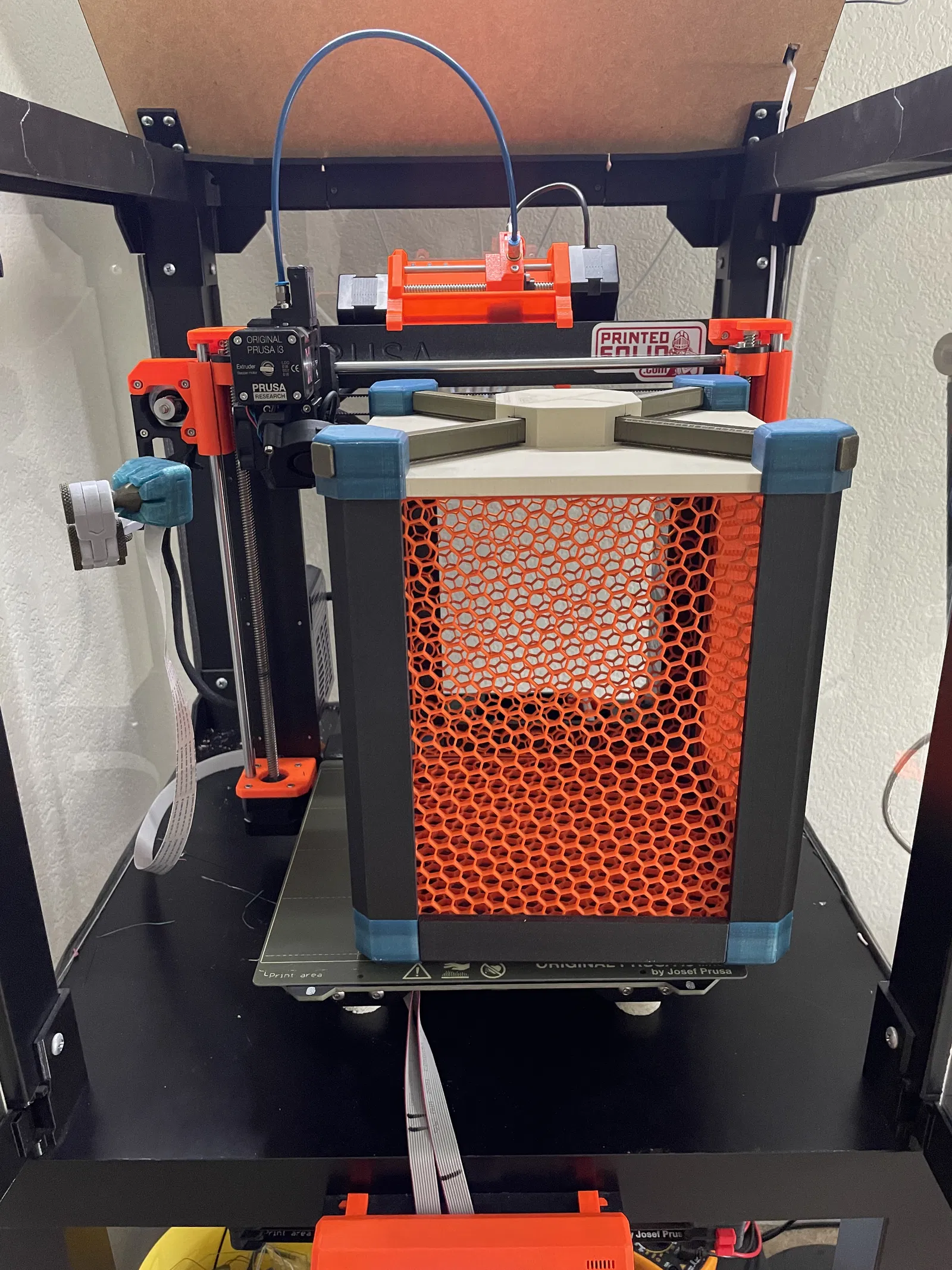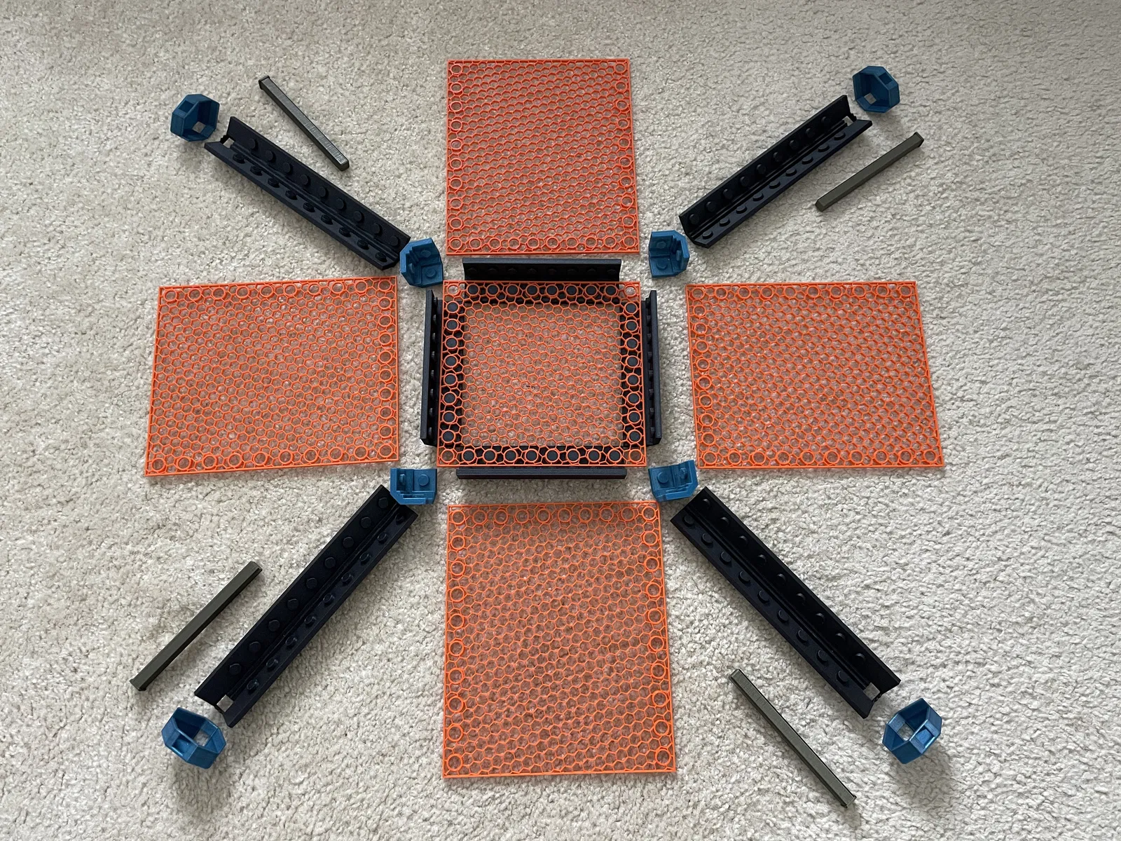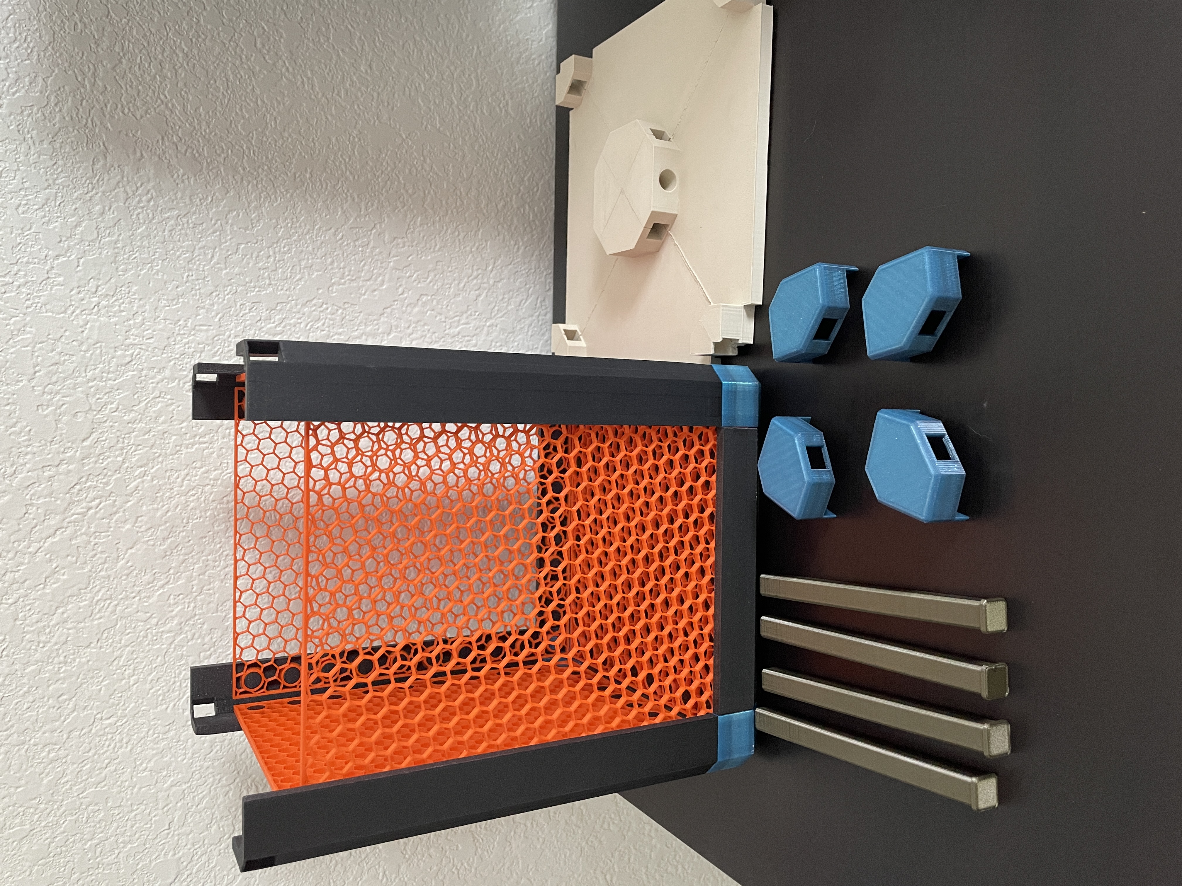Ban đầu được thiết kế để đựng các board game có các ô lớn, cái thùng này được thiết kế để in thành nhiều mảnh nhỏ, sau đó lắp ráp với nhau bằng các bộ phận khớp nối ma sát dựa trên dung sai của máy in. Có 5 loại tấm panel khác nhau cần được in mà không có lớp trên hoặc dưới đặc, chỉ có lớp viền và ruột. Điều này giúp tiết kiệm nhựa, và cũng cho phép tạo ra các thiết kế lưới đẹp mắt bằng cách sử dụng các kiểu ruột khác nhau. Tôi đã sử dụng kiểu hình lục giác cho của mình, nhưng bạn có thể sử dụng bất kỳ kiểu nào khác tùy thích.