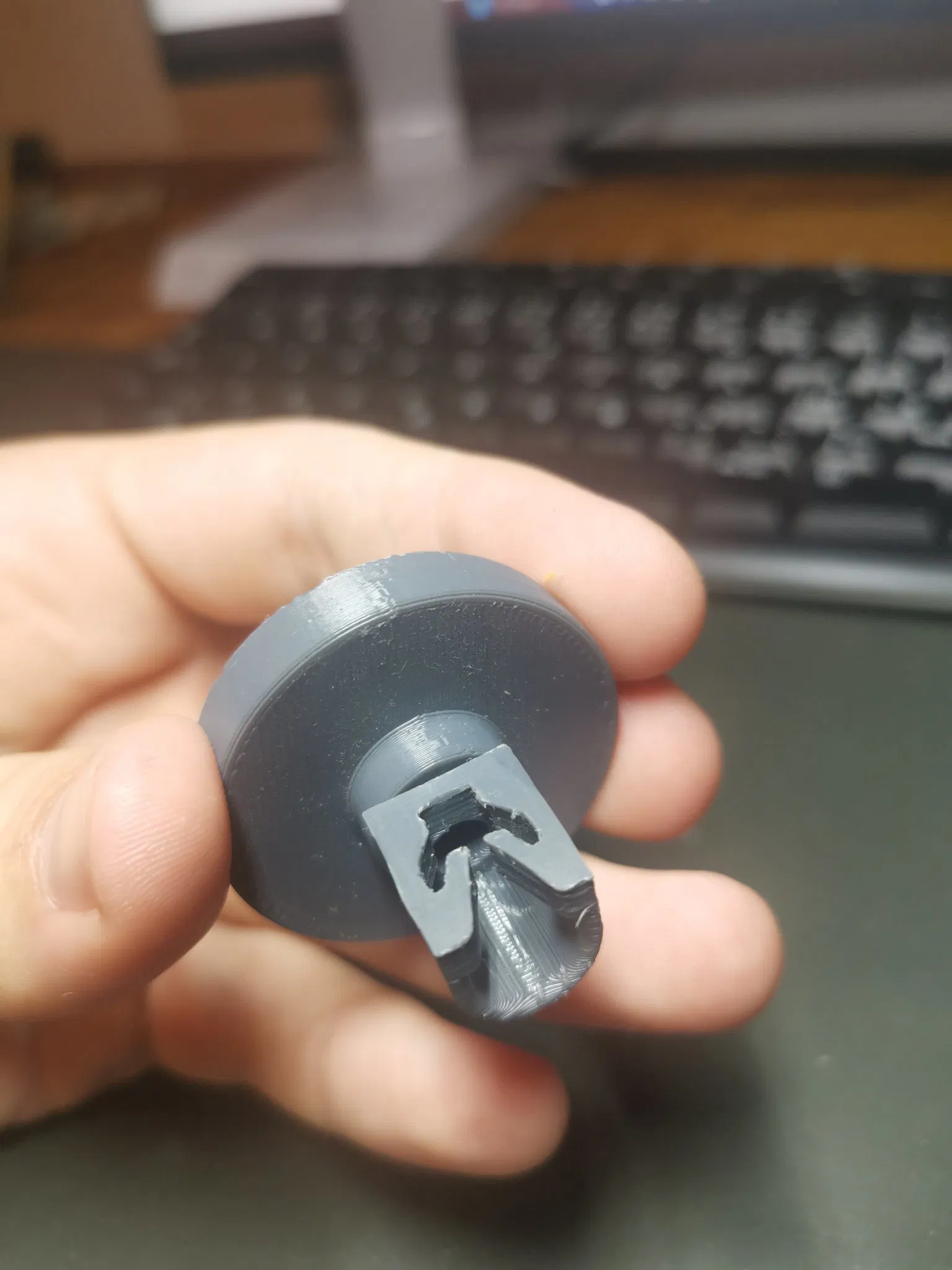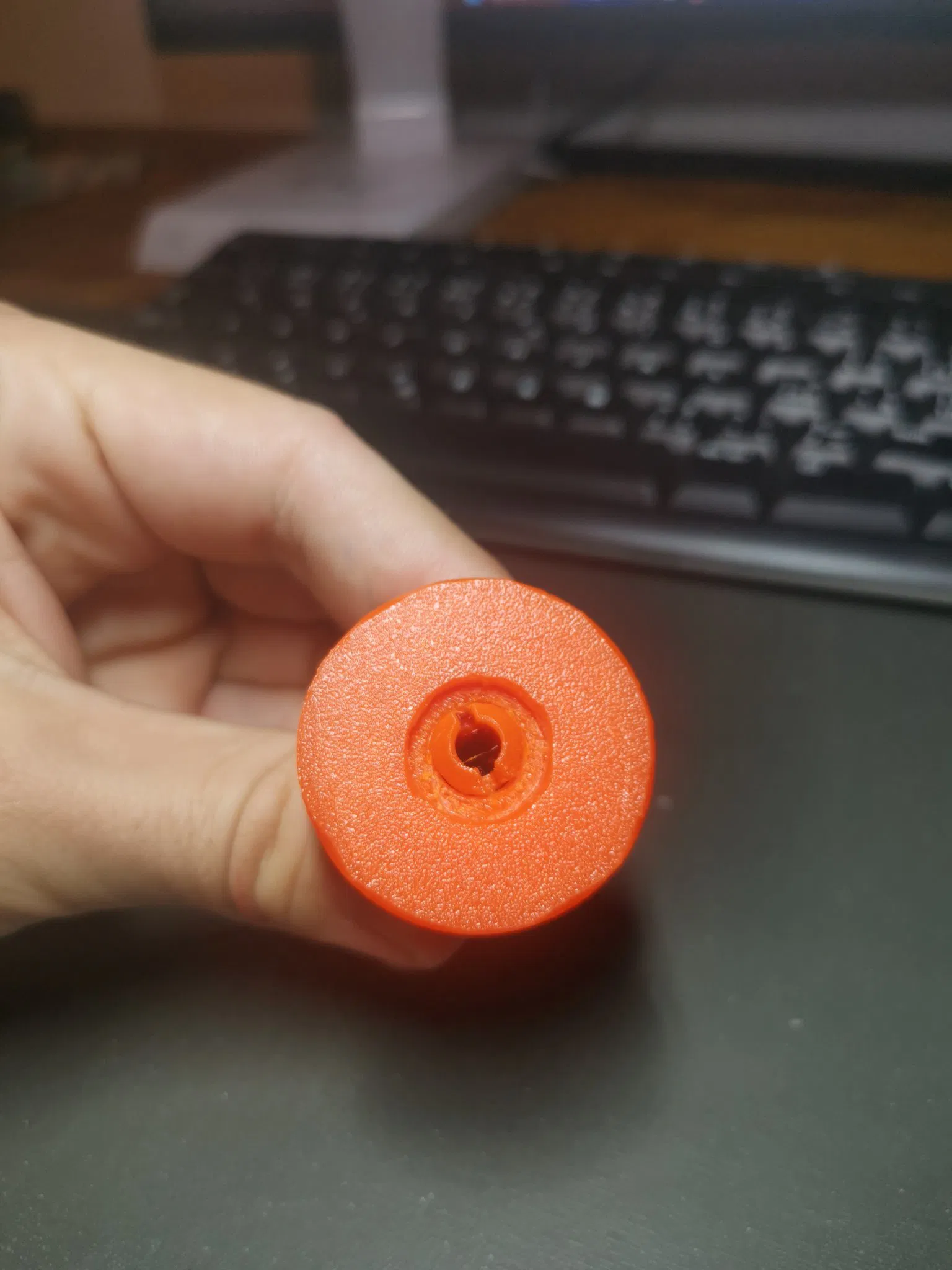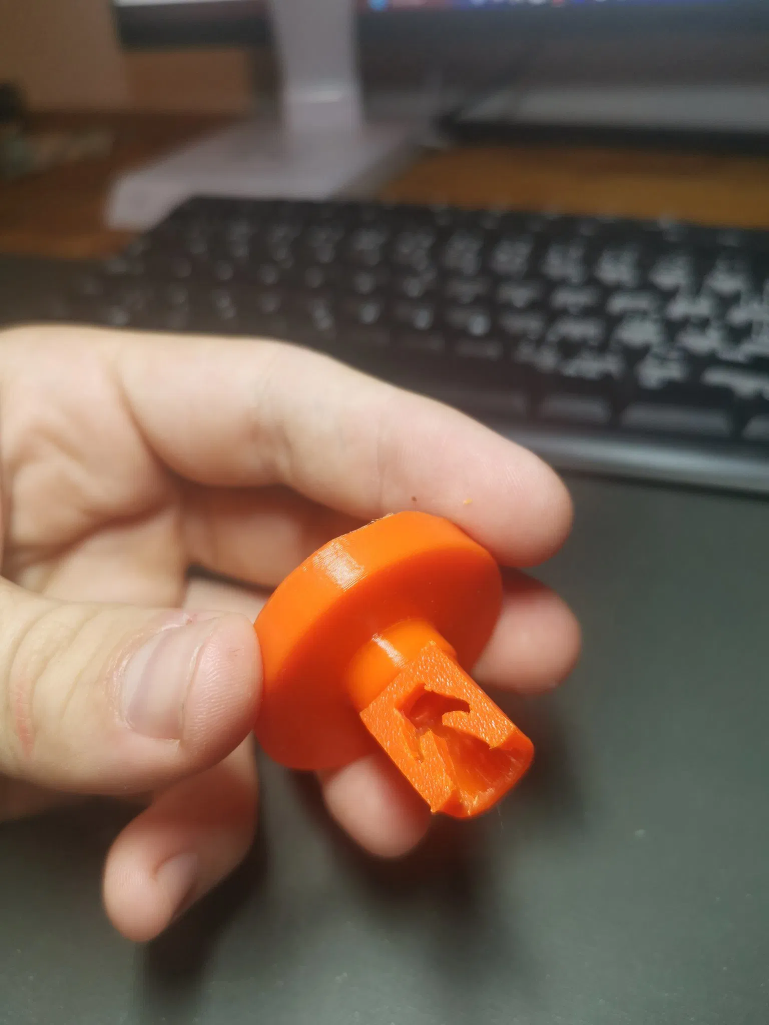Druhý (oranžový) První model tisknutý z petg, nhỏ tolerances, cài đặt cơ bản, vật liệu kém, chu kỳ 70 độ không chịu nổi.
