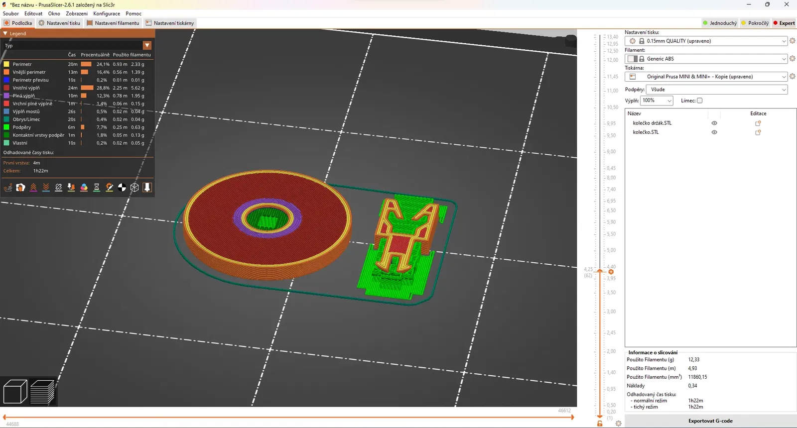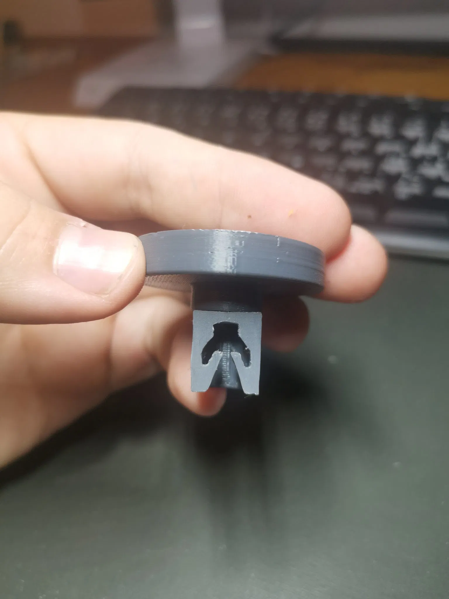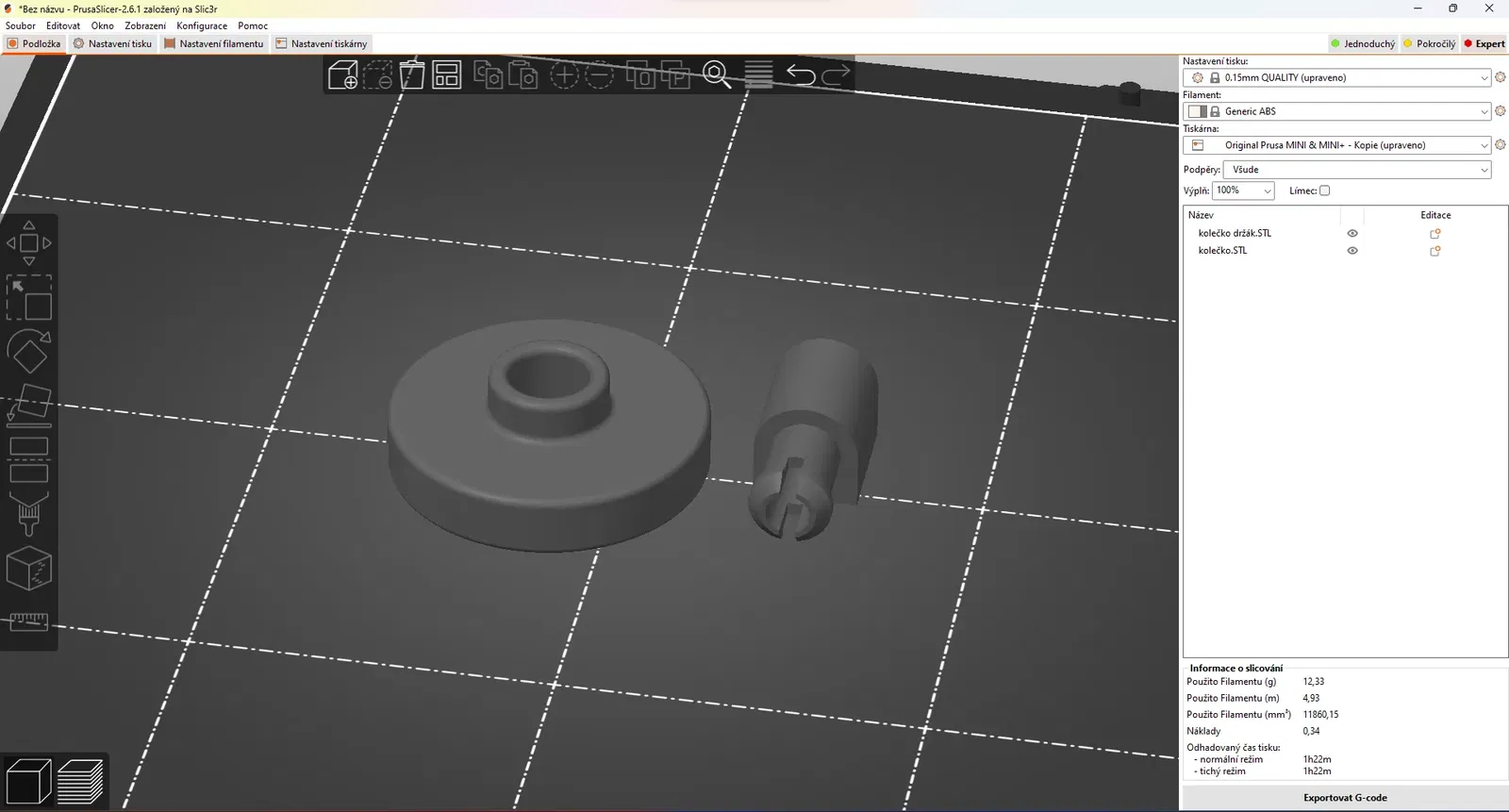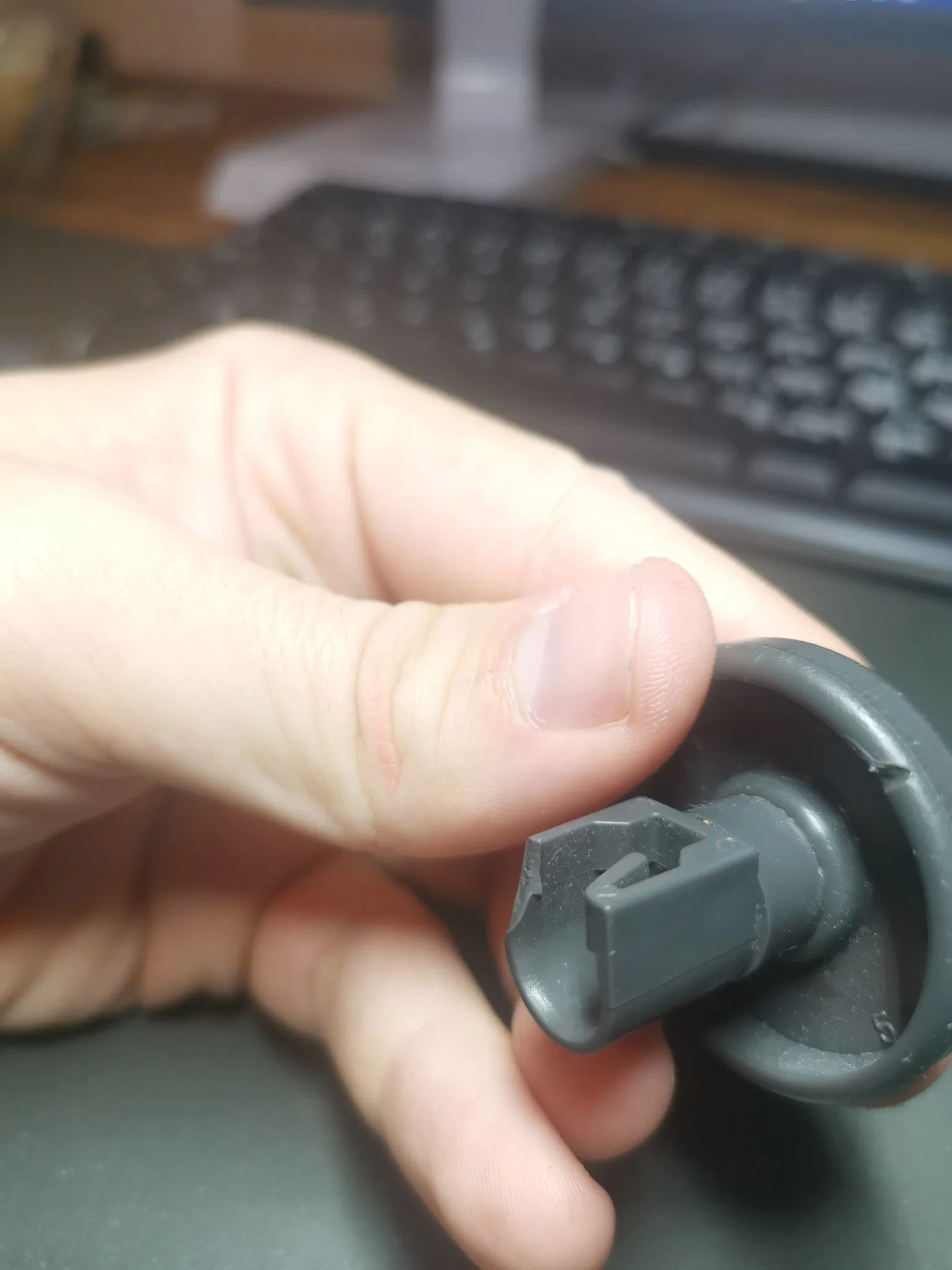 Druhý (oranžový) První model tisknutý z petg, nhỏ tolerances, cài đặt cơ bản, vật liệu kém, chu kỳ 70 độ không chịu nổi.