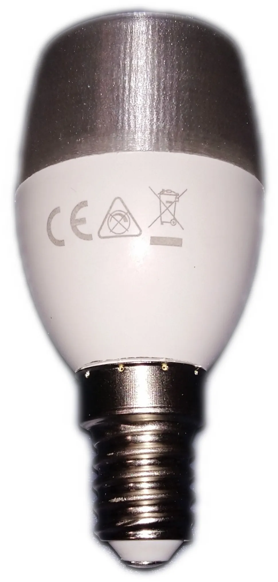 Thay thế nắp trên của bóng đèn LED E14: Biến thể đầy đủ và cắt trong một nửa.