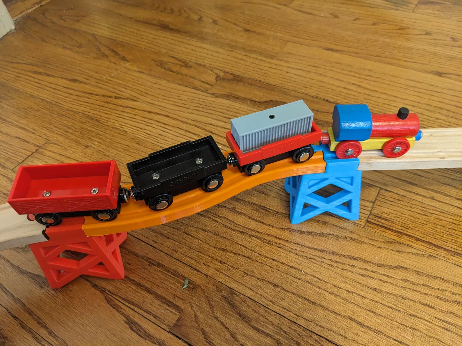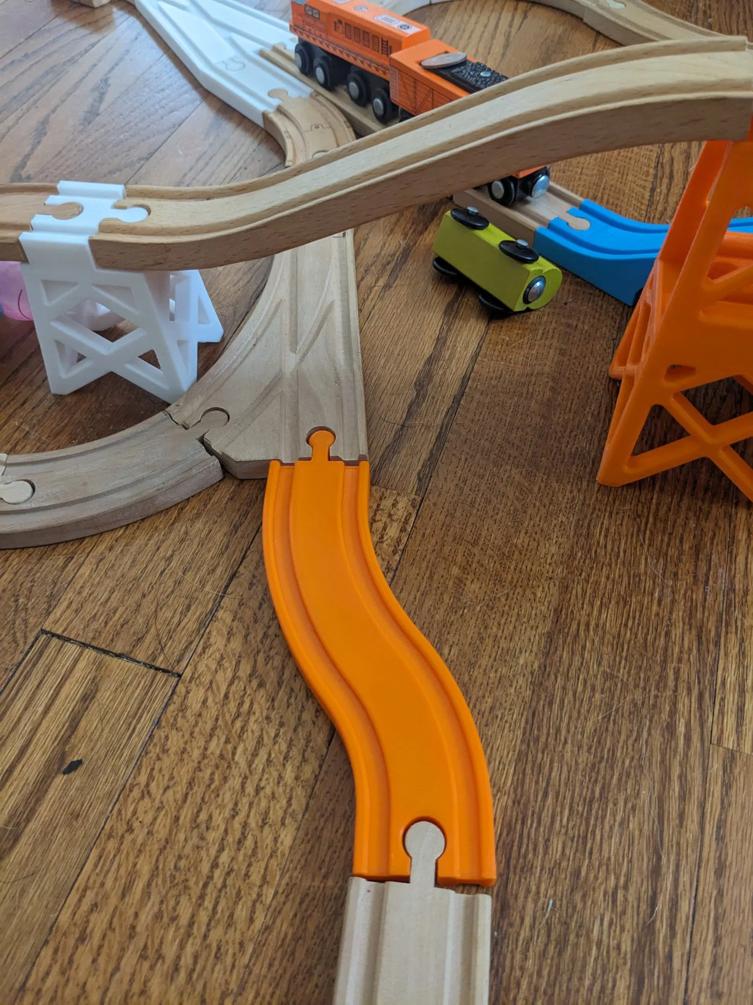 Mảnh đường ray có thể đảo ngược này tương thích với Brio và Ikea, lệch một chiều rộng đường ray sang một bên. Tôi đã bao gồm hai chiều dài. Mảnh 150mm (6 inch) là ngắn nhất có thể trong khi vẫn giữ cho các đường cong đủ dần để cho phép tàu đi qua dễ dàng. Mảnh 200mm (8 inch) là lớn nhất có thể trong khi vẫn vừa vặn trên bàn in Prusa Mini trong một mảnh, mặc dù không có chân. Cũng hãy thoải mái khám phá các mặt hàng liên quan đến tàu khác của tôi: - Cần cẩu cầu cho tàu gỗ