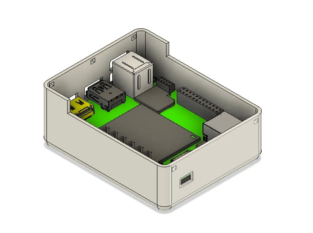 Nó phù hợp với LattePanda có tản nhiệt/quạt được lắp đặt. Có các lỗ cắt cho HDMI, USB và nguồn điện. Vỏ trên có chỗ cho một pin lithium ion nữa.