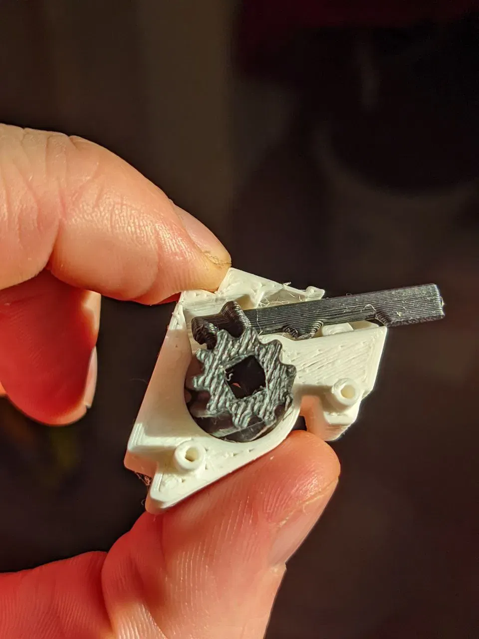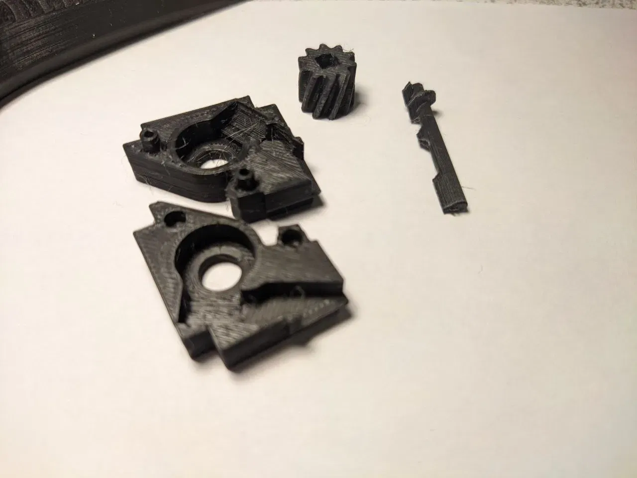 Thay thế bộ phận cơ chế nghiêng “que” mù. Bộ bánh răng chính trong cái của tôi đã bị mòn và vỡ ra ở một thời điểm nào đó, và tôi đã thay thế chỉ phần đó - nó hoạt động rất tốt. Tôi chưa thử nghiệm toàn bộ cái trong vị trí, và, trừ khi bạn đang sử dụng một vật liệu tốt hơn, tôi nghĩ mọi thứ có thể hơi quá giòn. Đặc biệt là phần “thanh/giun”.