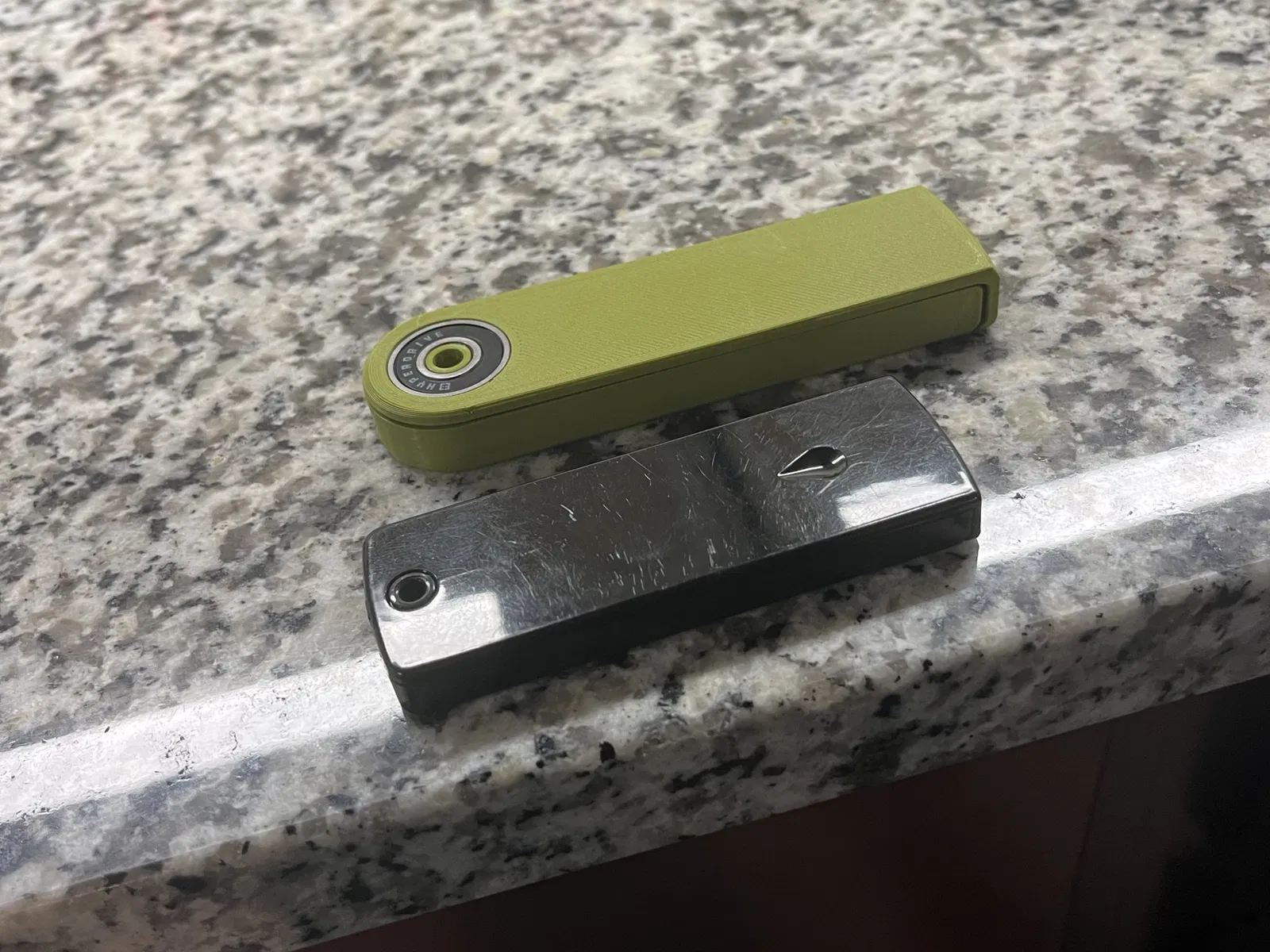 Nó sử dụng một vòng bi skateboard 608 thông thường cho bản lề, tạo ra một diện mạo công nghiệp độc đáo. Có nhiều kiểu dáng và màu sắc khác nhau của vòng bi 608.