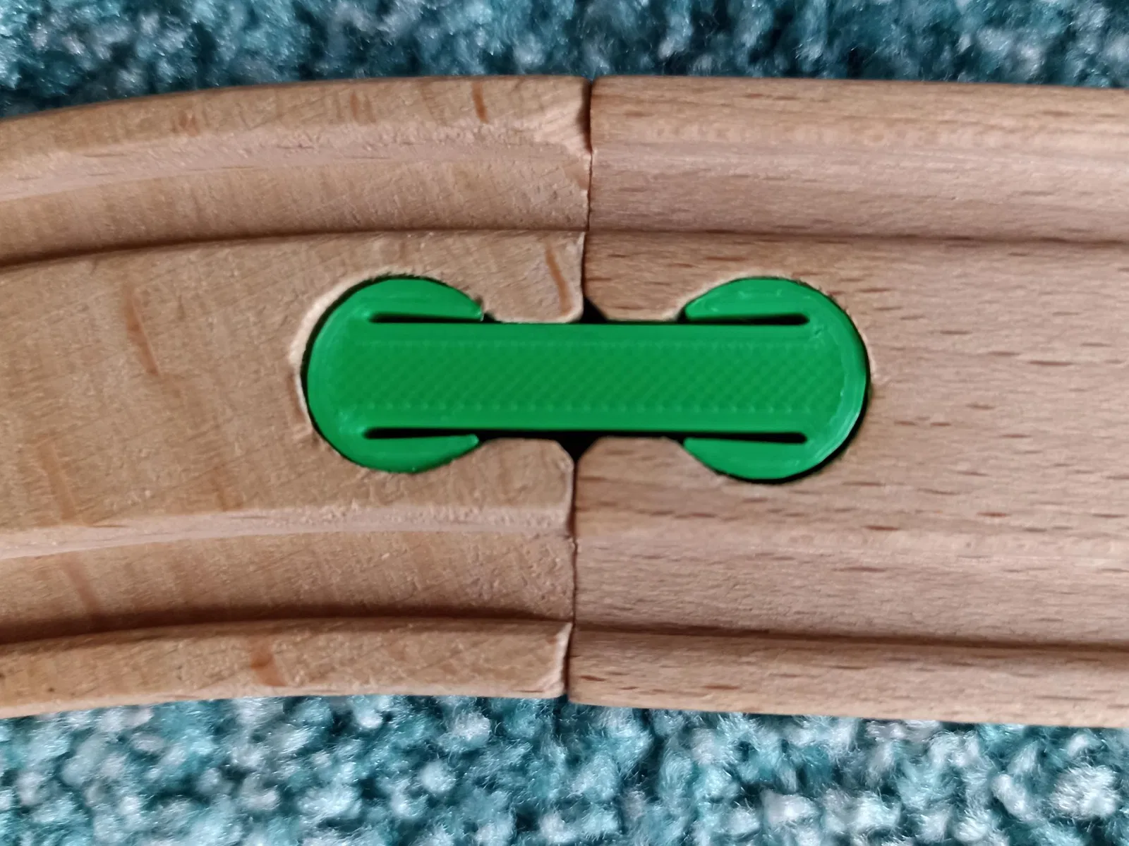 Đầu nối linh hoạt để kết nối hai bản nhạc brio bằng gỗ.