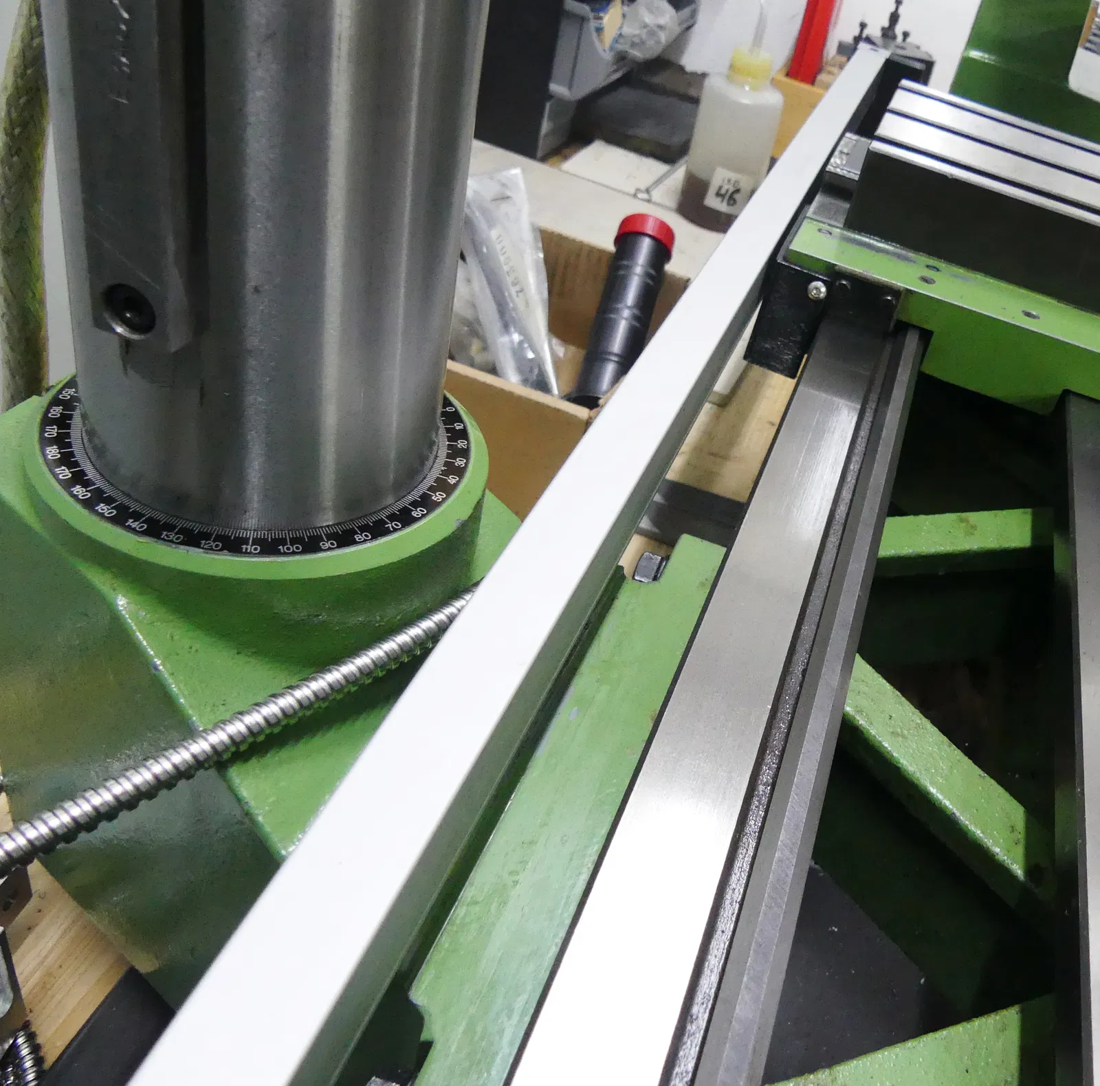 Mount trục Z cho Emco Maximat Super 11 của mình để gắn Đầu đọc kỹ thuật số (DRO) với Thước đo thủy tinh mảnh của Hymseann (chiều dài làm việc X = 140mm, Z = 800mm và Phay đứng = 350mm, độ chính xác 0,005mm) và bộ DRO SNS-3V. LINK