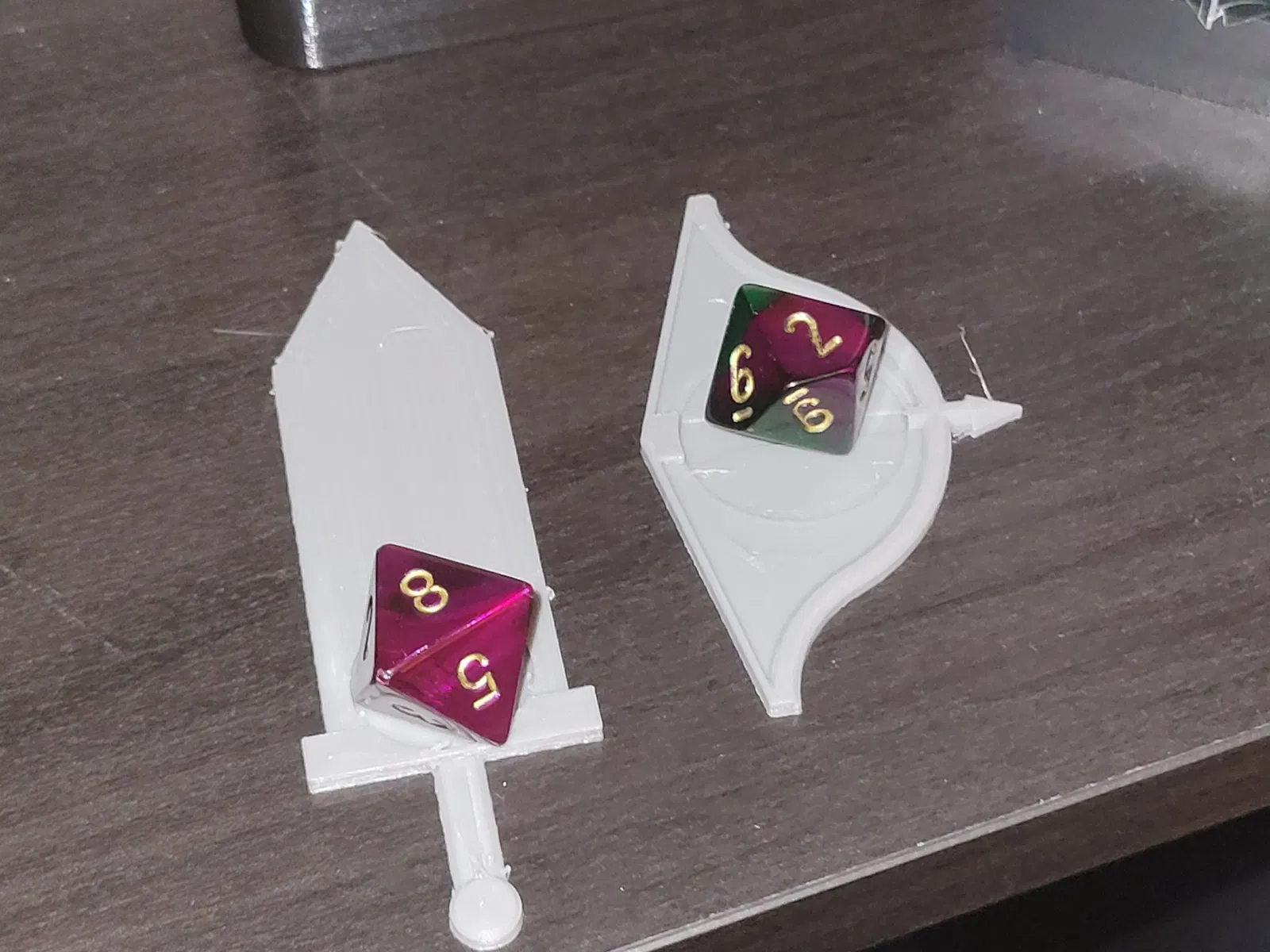 Vị trí cho viên xúc xắc trên thanh kiếm (cận chiến) nhỏ hơn một chút so với vị trí cho cung (tầm xa) nên bạn có thể muốn thay đổi kích thước để phù hợp với kích thước viên xúc xắc của bạn.