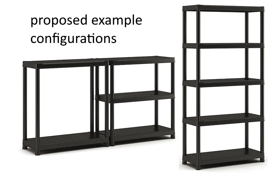 Tôi đã làm một số bộ phận thay thế cho kệ Keter plus 90/40/5 bằng nhựa nặng (in thêm các bộ phận cũng cho phép các cấu hình khác nhau so với những hình ảnh ví dụ đi kèm):