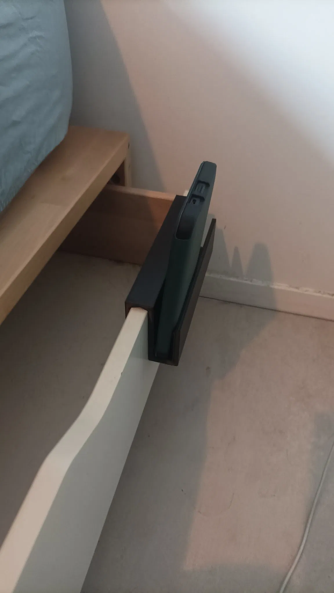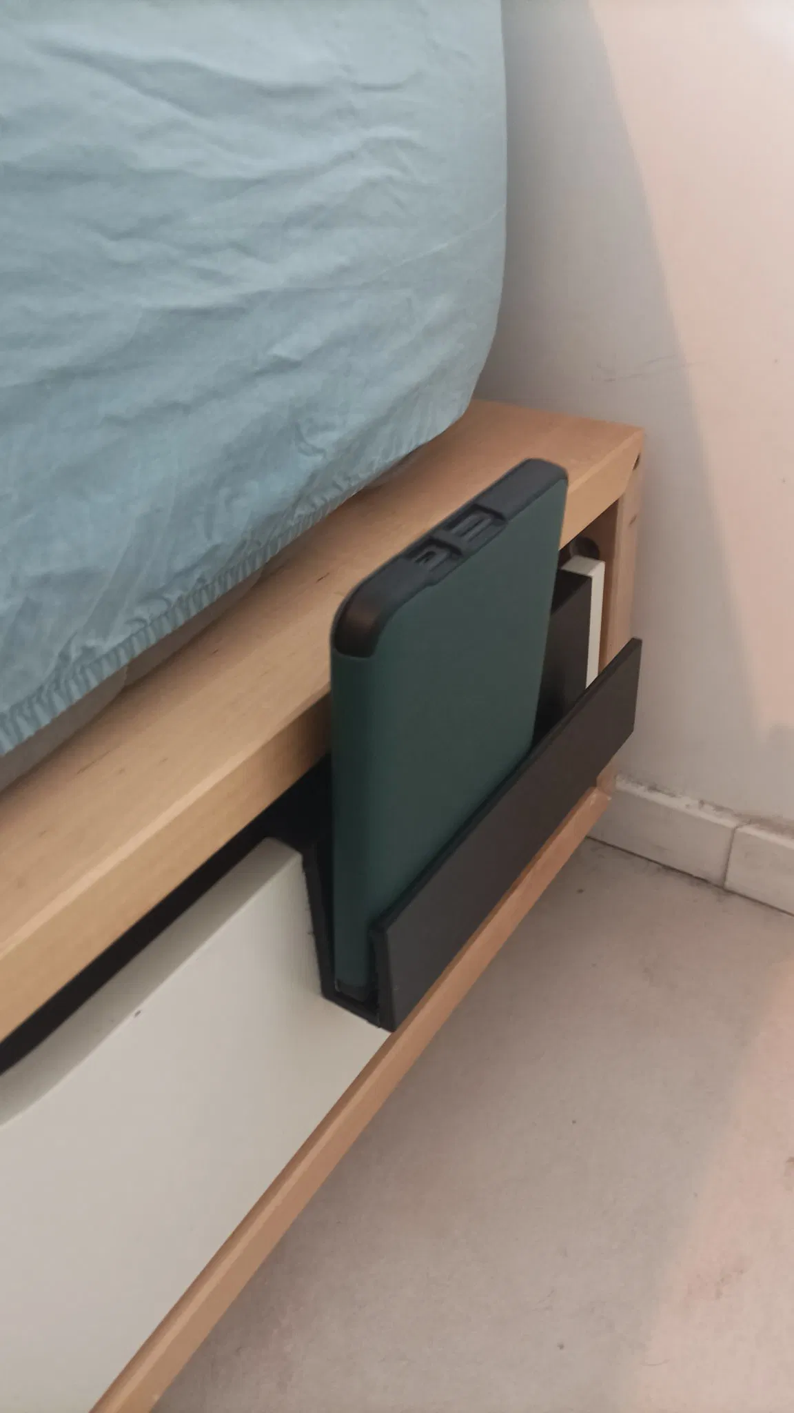 Tôi không có bàn đầu giường, vì vậy tôi đã tạo ra một cái gì đó để đặt máy đọc sách điện tử và điện thoại của mình.