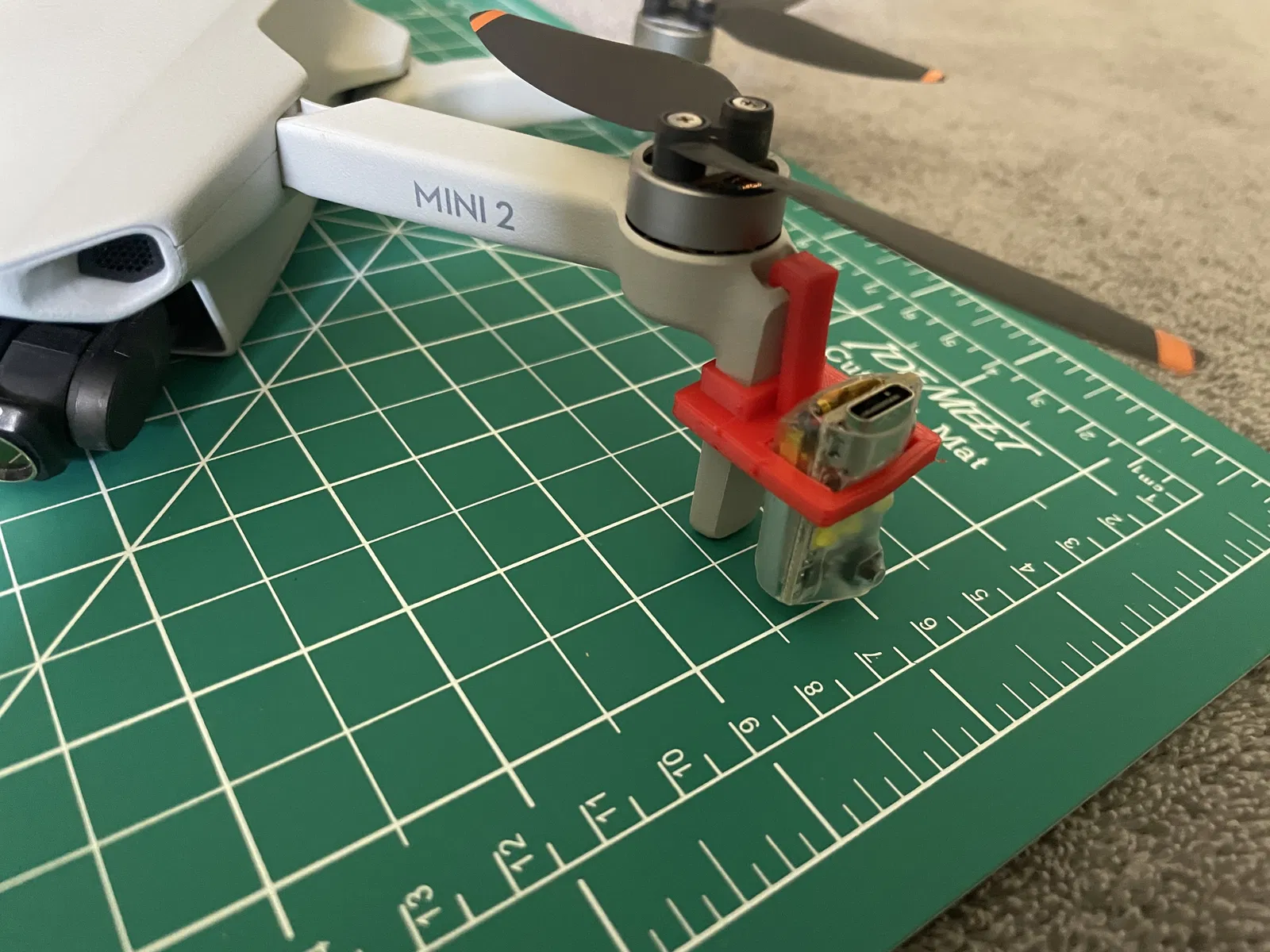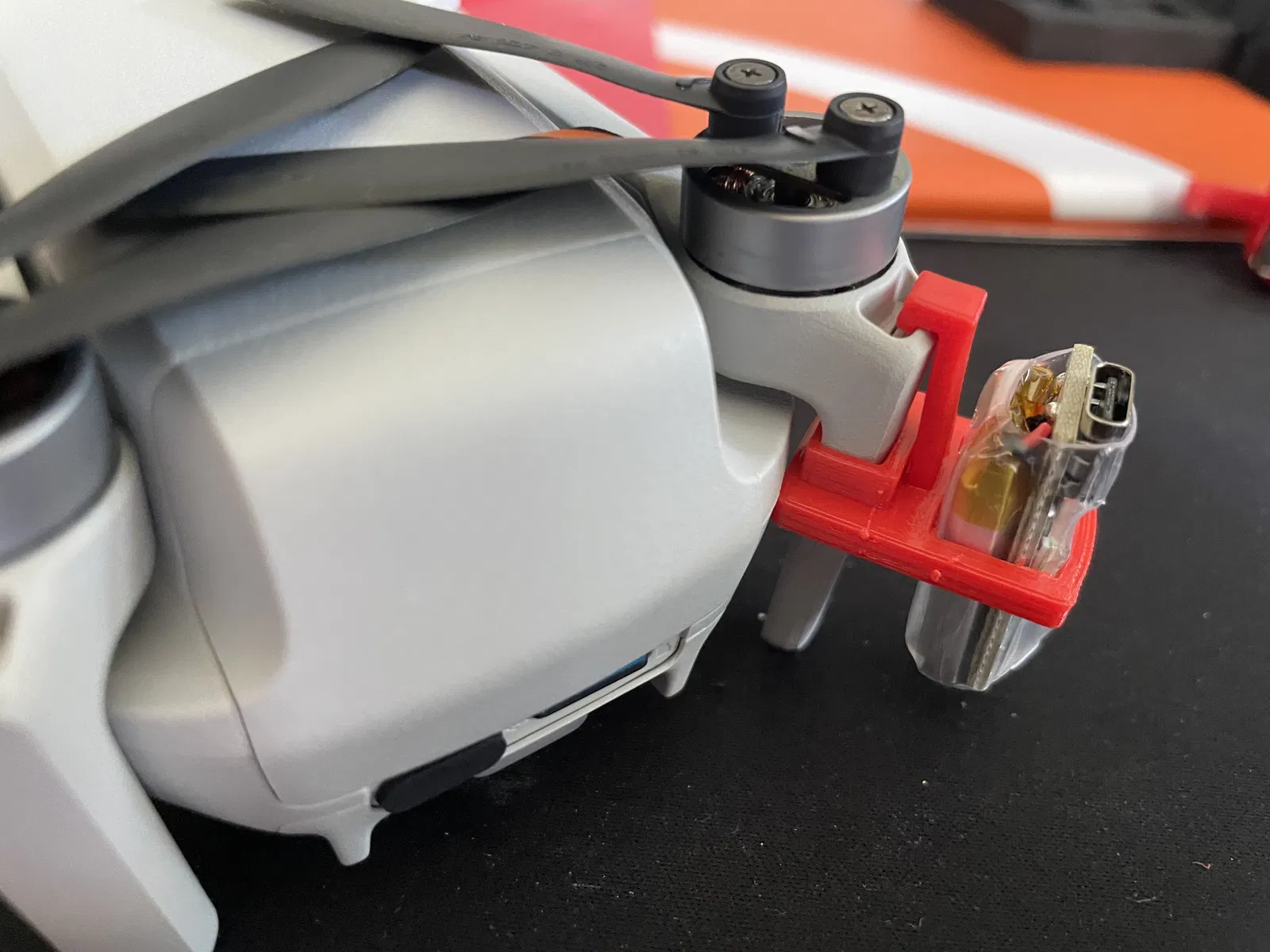 Giá đỡ cánh tay phía trước cho Mini 2, sử dụng đèn VIFLY strobe. Sản phẩm được in bằng TPU gồm 2 bộ phận, có hai phiên bản đế khác nhau tùy theo vị trí đặt đèn và cổng sạc.